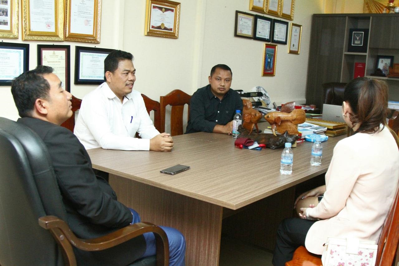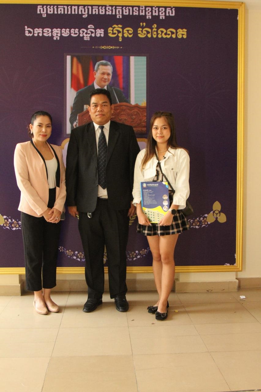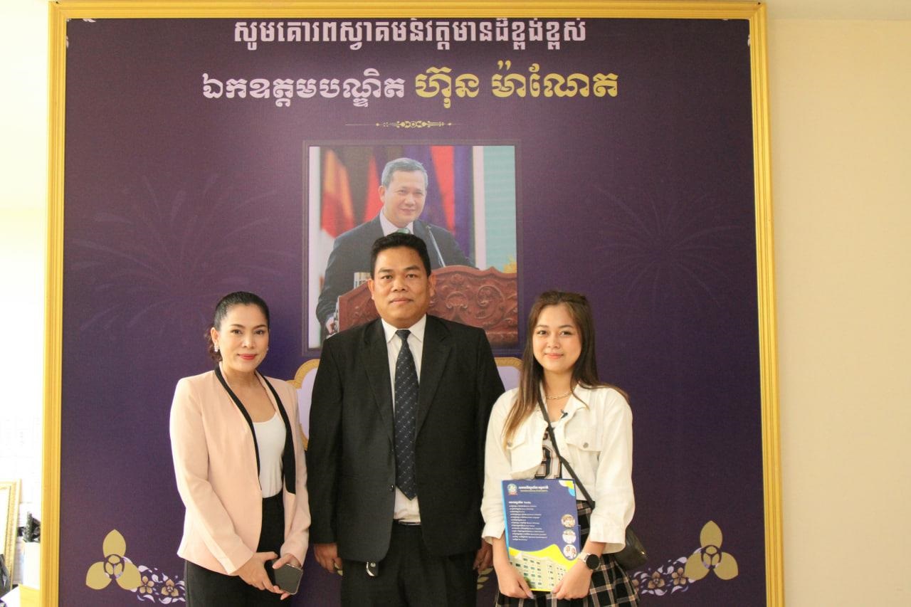 ក្នុងឱកាសទៅទទួលយកអាហារូបករណ៍ កញ្ញា ក៏បានទទួលស្វាគមន៍ និងសំណេះសំណាលយ៉ាងកក់ក្តៅ ពីលោក សាម៉ន បណ្ឌិត្យ អនុរដ្ឋលេខាធិកាក្រសួងព័ត៌មាន និងជាសាកលវិទ្យាធិការរងរបស់សាកលវិទ្យាល័យអន្តរជាតិ IU។