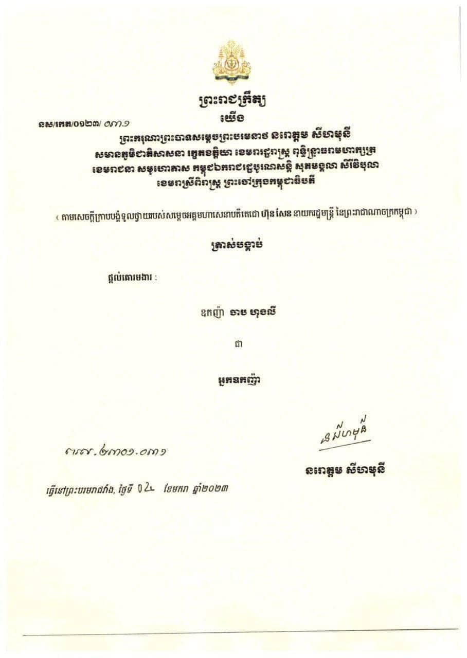 ឧកញ៉ា៥រូប ទទួលបាន គោរមងារជា «អ្នកឧកញ៉ា» ពីព្រះមហាក្សត្រ នៅដើមឆ្នាំ២០២៣
