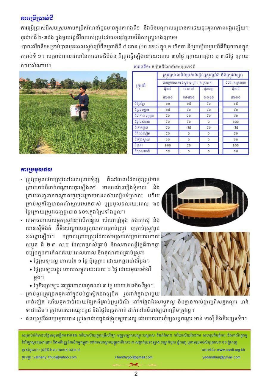 លោកបានឱ្យដឹងទៀតថា បច្ចុប្បន្ននេះ អ្នកជំនាញកំពុងធ្វើការផ្សព្វផ្សាយដល់កសិករ និងសហគមន៍ពីអត្ថប្រយោជន៍នៃពូជស្រូវថ្មី។ តាមរយៈការផ្សព្វផ្សាយ និងការដាំដុះសាកល្បង ដែលមានការចូលពីកសិករកន្លងមក ឃើញថាពួកគាត់បានបង្ហាញការពេញចិត្ត ហើយសង្ឃឹមថា ចាប់ពីឆ្នាំ២០២៣នេះ កសិករនឹងជ្រើសរើសពូជថ្មីនេះយកទៅដាំដុះ។ CARDI នឹងចាប់ផ្តើមផ្គត់ផ្គង់ពូជស្រូវថ្មីនៅទូទាំងប្រទេស តាមរយៈកសិករ រោងម៉ាស៊ីន និងសហគមន៍កសិកម្មជាដើម។
