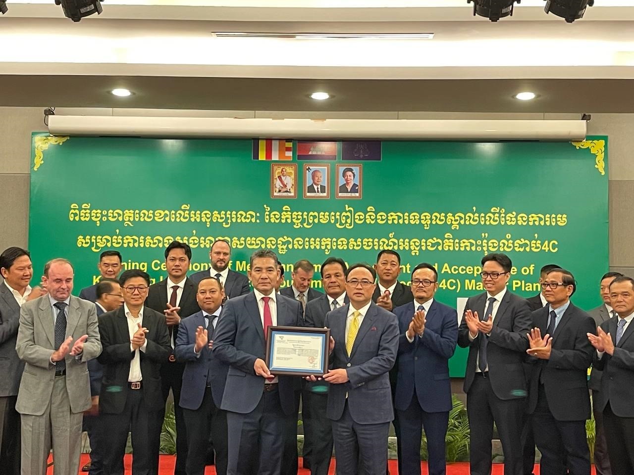 ពិធីចុះហត្ថលេខា លើអនុស្សរណៈនៃកិច្ចព្រមព្រៀង និងទទួលស្គាល់ផែនការមេ គម្រោងសាងសង់អាកាសយានដ្ឋានអន្តរជាតិកោះរ៉ុង បានធ្វើឡើង នៅសណ្ឋាគារ Cambodiana Hotel រាជធានីភ្នំពេញ។