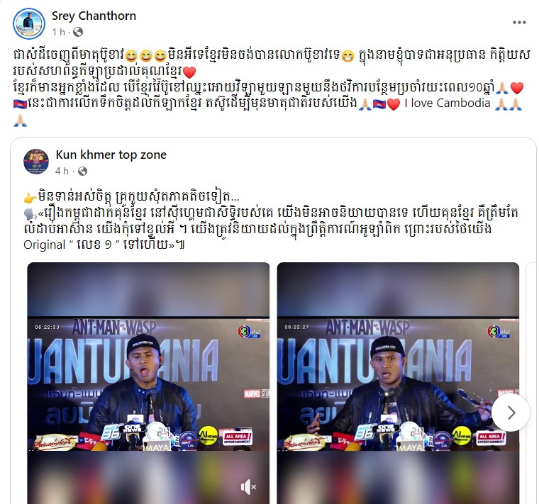 (ភ្នំពេញ)៖ ថ្មីៗនេះមានការចែករំលែកនៅលើបណ្តាញសង្គម ក្រោយលោកឧកញ៉ា ស្រី ចាន់ថន បានប្រកាសលេីកទឹកចិត្តប្រគល់ផ្ទះវីឡាតម្លៃ២៧ម៉ឺនដុល្លារ ឡានទំនើប និង ថវិកា ប្រចាំខែរយៈពេល១០ឆ្នាំ ឱ្យកីឡាករគុនខ្មែរ រូបណា អាចយកឈ្នះ ប៊ូ ខាវ។ ការប្រកាសនេះធើ្វឡើង ក្រោយពីលោកឧកញ៉ា បានឃើញនូវវីដេអូកីឡាករប្រដាល់ថៃរូបនេះ និយាយថា គុនខែ្មរ នៅត្រឹមកម្រិតអាស៊ាន មិនដូច ម៉ឺយថៃ របស់គេដែលស្ថិតនៅកម្រិតព្រឹត្តិការណ៍អូឡាំពិក។