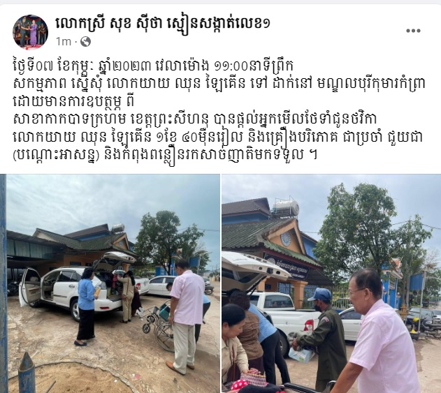 យោងតាមប្រភពពីលោក ហ៊ុយ ប៊ុនឡេង បានឱ្យដឹងថាក្រោយមានសេចក្តីរាយការណ៍ពីពលរដ្ឋថាឃើញជីដូនមួយរូបវយ័ជាង៩០ឆ្នាំនៅម្តុំឃ្លាំងលើសង្កាត់លេខ១ ដែលដំបូង គេសន្និដ្ឋានថាទំនងជាវង្វេងផ្ទះឬវង្វេងសាច់ញាតិ អាជ្ញាធរមូលដ្ឋានក៏ចុះសាកសួរនិងក្រោយមកបាននាំជីដូនរូបនេះមកមើលថែបណ្តោះអាសន្ននៅសាលាសង្កាត់លេខ១ ក្រុងព្រះសីហនុ។ ក្នុងពេលរង់ចាំ មិនឃើញកូនចៅ សាច់ញាតិមកទទួលយក មន្ត្រីសង្កាត់និងក្រុមការងារសង្គ្រោះ ក៏បានរៀបចំកន្លែងឲ្យលោកយាយសម្រាន្តនៅសាលាសង្កាត់លេខ១ជាបណ្តោះអាសន្ន និងដាក់ឲ្យមានអ្នកមើលថែទាំលោកយាយរូបនេះ ចាប់តាំងពីយប់ថ្ងៃទី៥ ខែកុម្ភៈ បន្តរហូតមកដល់យប់ថ្ងៃទី៦ ខែកុម្ភៈ ឆ្នាំ២០២៣ ក៏នៅតែមិនឃើញមានកូនចៅមកទទួលយក ទើបអាជ្ញាធររដ្ឋបាលខេត្ត និងសាខាកាកបាទក្រហមខេត្តព្រះសីហនុរៀបចំដោះស្រាយជាបណ្តោះអាសន្នបែបនេះ៕