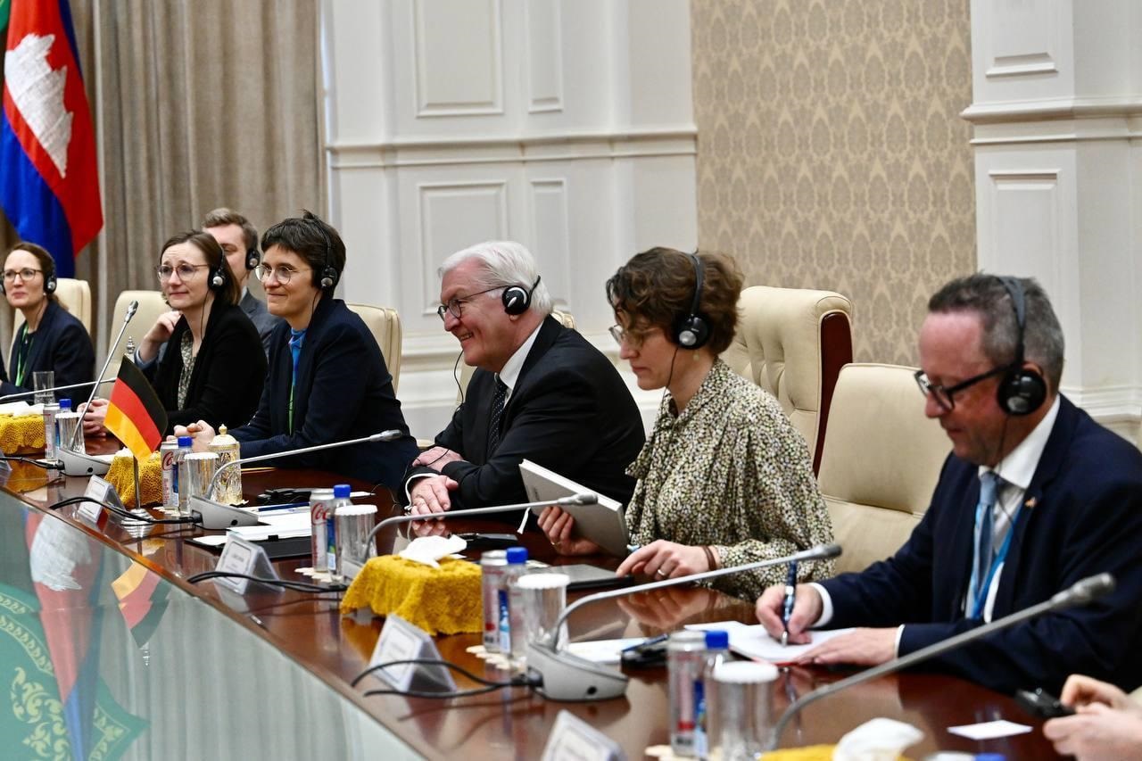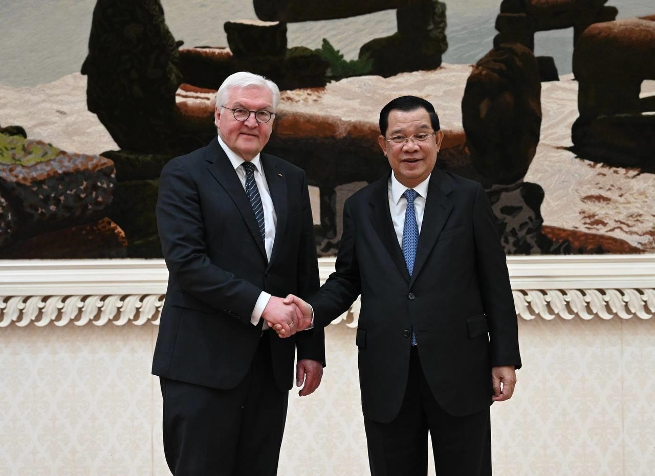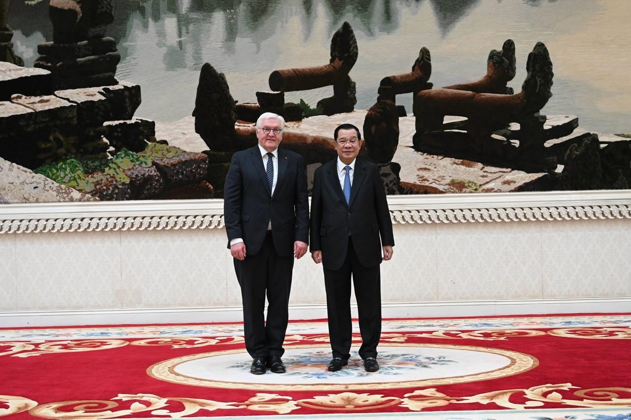 សូមបញ្ជាក់ថា លោកប្រធានាធិបតី និងលោកជំទាវ បានដឹកនាំគណៈប្រតិភូជាន់ខ្ពស់ មកដល់ប្រទេសកម្ពុជា កាលពីព្រឹកថ្ងៃទី១៤ ខែកុម្ភៈ ឆ្នាំ២០២៣ ដើម្បីពង្រឹង និងពង្រីកទំនាក់ទំនង និងកិច្ចសហប្រតិបត្តិការទ្វេភាគី។ ទស្សនកិច្ចនេះធ្វើឡើងតបតាមការអញ្ជើញរបស់ សម្តេចវិបុលសេនាភក្តី សាយ ឈុំ ប្រមុខរដ្ឋស្តីទី ហើយក៏ជាទស្សនកិច្ចរបស់ប្រធានាធិបតីអាល្លឺម៉ង់លើកដំបូង នៅក្នុងប្រទេសកម្ពុជាផងដែរ។