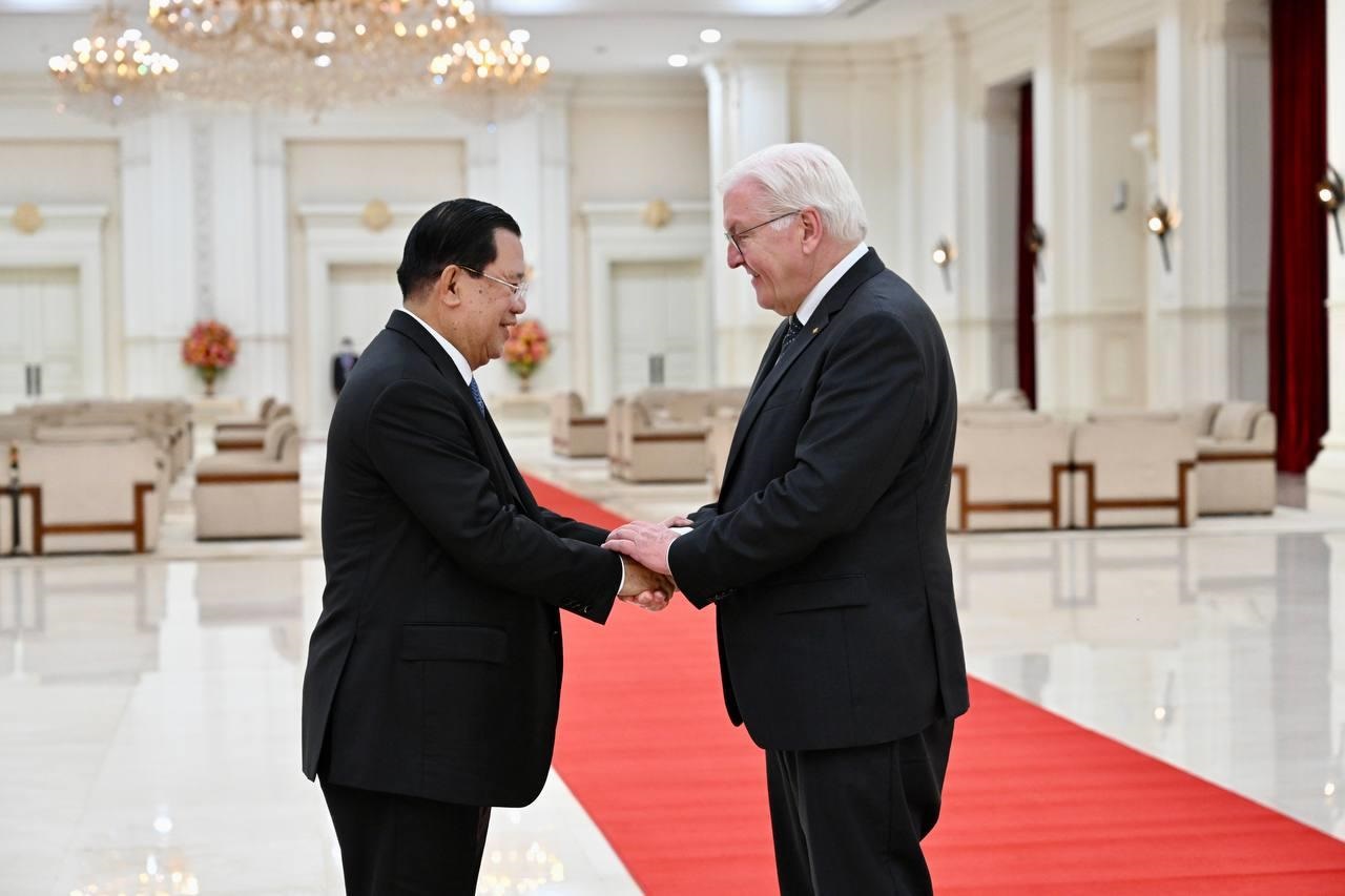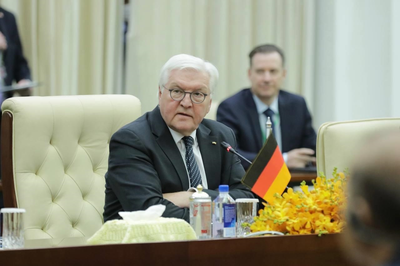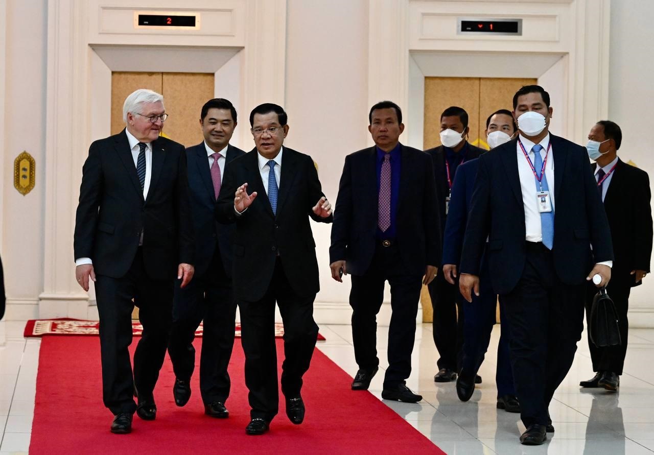 សូមបញ្ជាក់ថា លោកប្រធានាធិបតី និងលោកជំទាវ បានដឹកនាំគណៈប្រតិភូជាន់ខ្ពស់ មកដល់ប្រទេសកម្ពុជា កាលពីព្រឹកថ្ងៃទី១៤ ខែកុម្ភៈ ឆ្នាំ២០២៣ ដើម្បីពង្រឹង និងពង្រីកទំនាក់ទំនង និងកិច្ចសហប្រតិបត្តិការទ្វេភាគី។ ទស្សនកិច្ចនេះធ្វើឡើងតបតាមការអញ្ជើញរបស់ សម្តេចវិបុលសេនាភក្តី សាយ ឈុំ ប្រមុខរដ្ឋស្តីទី ហើយក៏ជាទស្សនកិច្ចរបស់ប្រធានាធិបតីអាល្លឺម៉ង់លើកដំបូង នៅក្នុងប្រទេសកម្ពុជាផងដែរ។