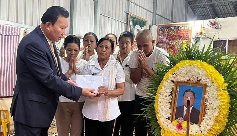 (ភ្នំពេញ)៖ សម្តេចតេជោ ហ៊ុន សែន នាយករដ្ឋមន្ត្រីនៃកម្ពុជា និងសម្តេចកិត្តិព្រឹទ្ធបណ្ឌិត ប៊ុន រ៉ានី ហ៊ុនសែន បានចាត់ឲ្យលោក សេង ទៀង ជំនួយការផ្ទាល់សម្ដេចតេជោនាយករដ្ឋមន្ត្រី នាំយកបច្ច័យរបស់សម្តេចទាំងទ្វេចំនួន ២០លានរៀល ទៅចូលបុណ្យសពនាយក្តឹប អតីតតារាកំប្លែងជើងចាស់មួយរូប។