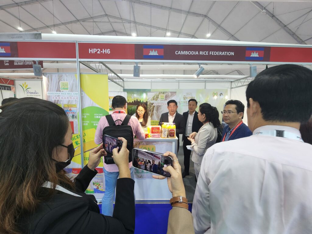 ជាមួយគ្នានេះ នៅថ្ងៃទី២១ ខែកុម្ភៈ ឆ្នាំ២០២៣នេះ លោកស្រី តឹករ៉េត កំរង រដ្ឋលេខាធិការ ក្រសួងពាណិជ្ជកម្ម បានដឹកនាំគណៈប្រតិភូអន្តរក្រសួង ធ្វើការទស្សនកិច្ចតាមស្តង់របស់សហព័ន្ធស្រូវអង្ករកម្ពុជា នៅក្នុងកម្មវិធីការតាំងពិព័រណ៍នេះផងដែរ ស្របពេលដែលលោកស្រី បានដឹកនាំក្រុមចចាររបស់កម្ពុជាទៅចរចាកិច្ចព្រមព្រៀង ពាណិជ្ជកម្មសេរី កម្ពុជា-អារ៉ាប់រួម នៅប្រទេសអារ៉ាប់រួម។