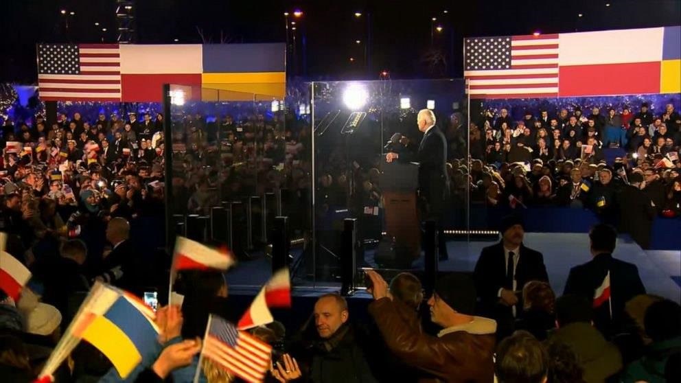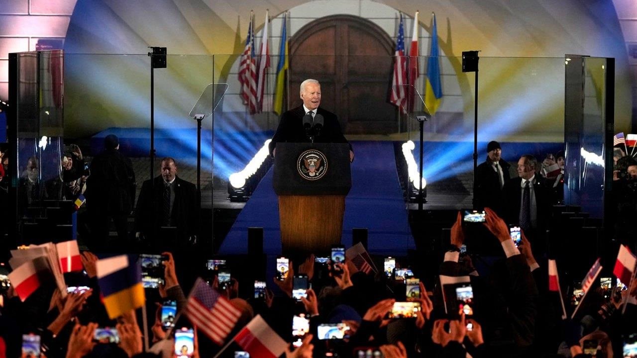 នៅក្នុងសុន្ទរកថាទៅកាន់មនុស្សរាប់ពាន់នាក់ដែលប្រមូលផ្ដុំគ្នានៅឯវិមាន Royal Castle ក្នុងទីក្រុងវ៉ាសូវី នៅថ្ងៃអង្គារសប្ដាហ៍នេះ លោក ចូ បៃដិន បានគូសបញ្ជាក់ដូច្នេះថា «ជនផ្ដាច់ការម្នាក់ ដែលចង់កសាងចក្រភពមួយឡើងវិញ នឹងមិនអាចយកឈ្នះក្ដីស្រឡាញ់របស់ប្រជាជនចំពោះសេរីភាពបានឡើយ ហើយអំពើឃោរឃៅក៏នឹងមិនអាចយកឈ្នះឆន្ទៈនៃសេរីភាពបាននោះដែរ»។ ប្រធានាធិបតីអាមេរិករូបនេះ បានបន្ថែមថា អ៊ុយក្រែននឹងមិនអាចក្លាយជាជ័យជម្នះសម្រាប់រុស្ស៉ីនោះទេ ពោលគឺមិនអាចជាដាច់ខាត។