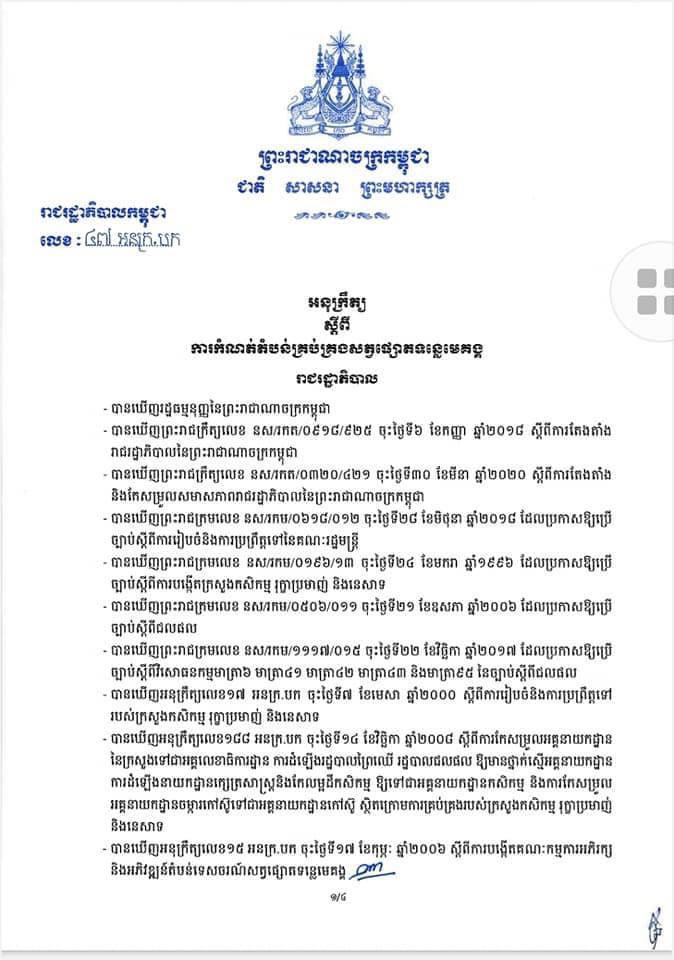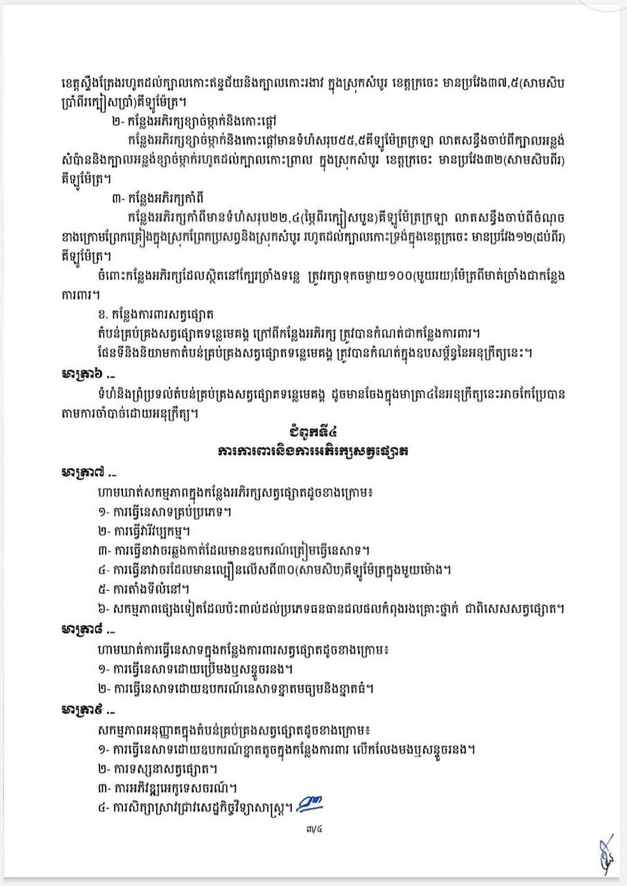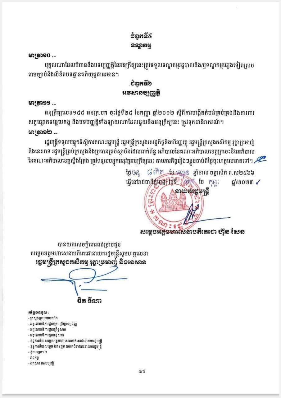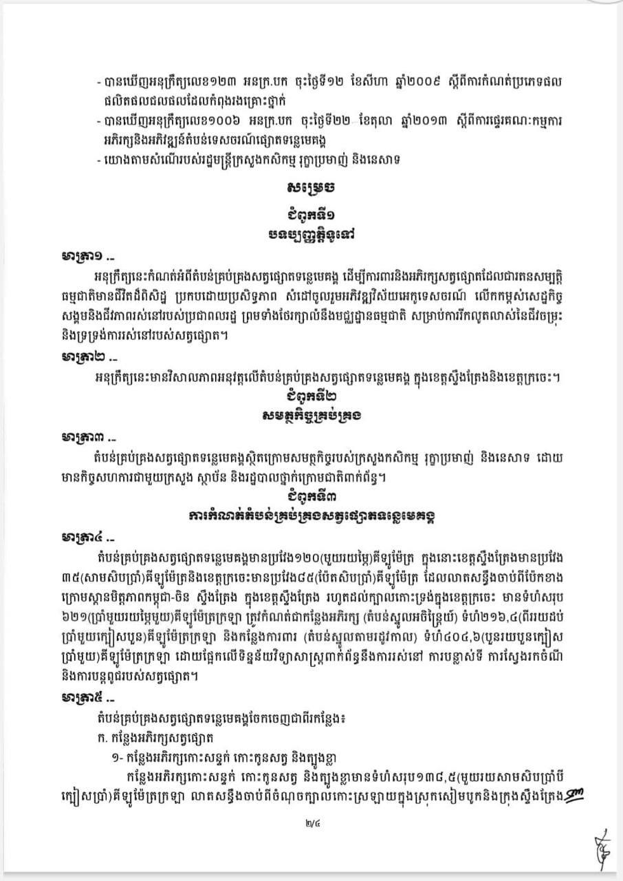 ខាងក្រោមនេះជាអនុក្រឹត្យកំណត់តំបន់គ្រប់គ្រងសត្វផ្សោតទន្លេមេគង្គ៖
