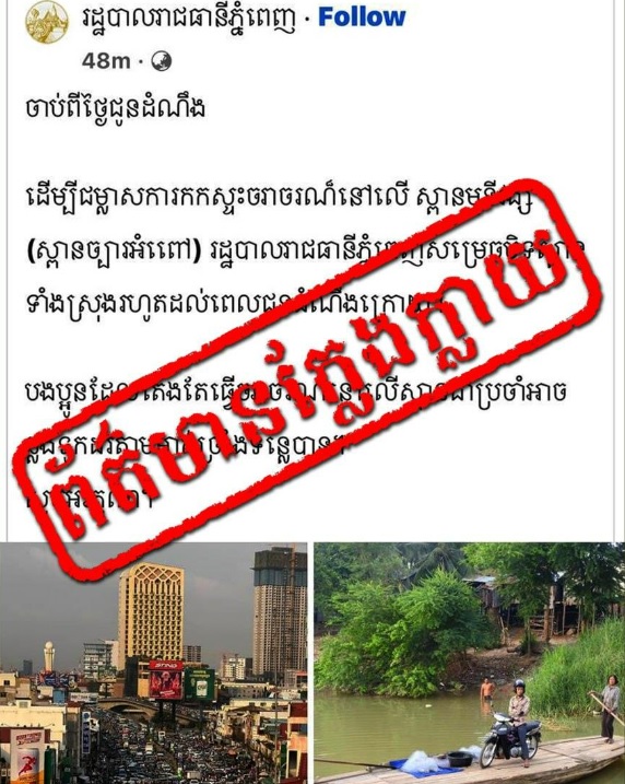 រដ្ឋបាលរាជធានីភ្នំពេញ ច្រានចោលព័ត៌មានប្រឌិត រឿងបិទស្ពានច្បារអំពៅមិនឲ្យធ្វើចរាចរណ៍ ដែលចែកចាយតាមបណ្តាញសង្គម