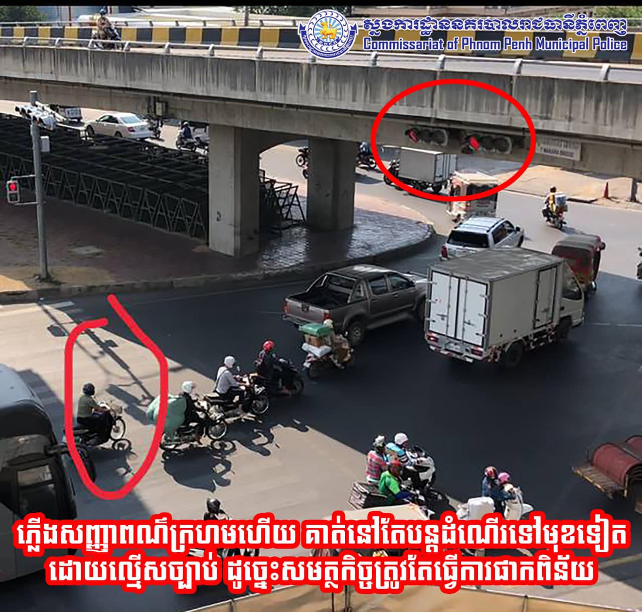 ស្នងការដ្ឋាននគរបាលរាជធានីភ្នំពេញ បានឱ្យដឹងថា នៅថ្ងៃទី០៤ ខែមីនា ឆ្នាំ២០២៣ វេលាម៉ោង០៣:៣០នាទី មានបុរសម្នាក់បានបើកបរម៉ូតូ ម៉ាក់…. ពាក់ផ្លាកលេខ… ល្មើសភ្លើងសញ្ញាចរាចរណ៍ពណ៌ក្រហម មានន័យថានៅពេលភ្លើងសញ្ញាចរាចរណ៍ពណ៌ក្រហម បុរសខាងលើនៅបន្តដំណើរទៅមុខ ដូច្នេះមន្ត្រីនគរបាលចរាចរណ៍នៅគោលដៅស្ពានអាកាសពេទ្យលោកសង្ឈបានធ្វើការឃាត់ និងពិន័យតាមច្បាប់ នៅពេលនោះគាត់ក៏បានស្នើសុំសមត្ថកិច្ចសម្របសម្រួល តែសមត្ថកិច្ចមិនព្រមគឺត្រូវអនុវត្តតាមច្បាប់ដែលបានកំណត់ ដោយធ្វើការផាកពិន័យតាមឧបករណ៍ម៉ាស៊ីនសម្រាប់ការផាកពិន័យ និងដកពិន្ទុលើប័ណ្ណបើកបរ។