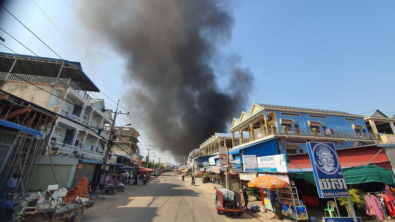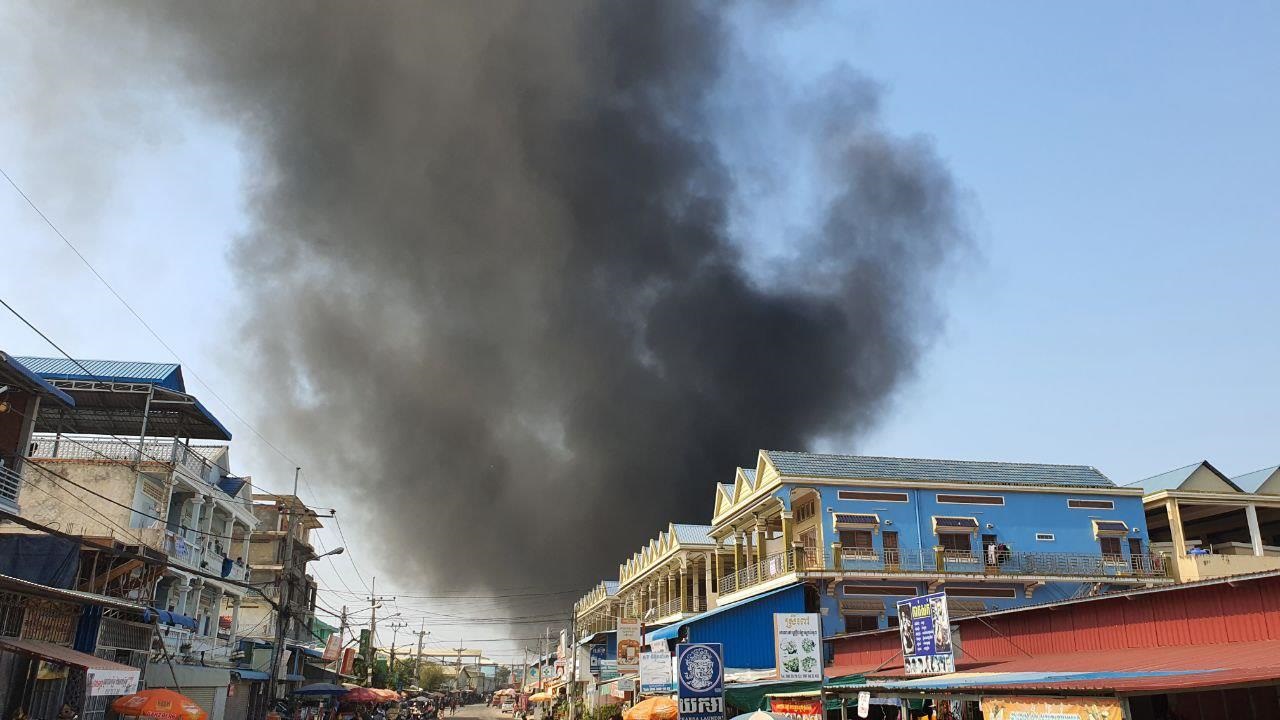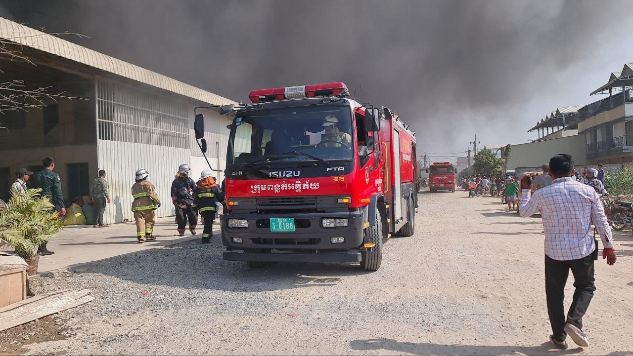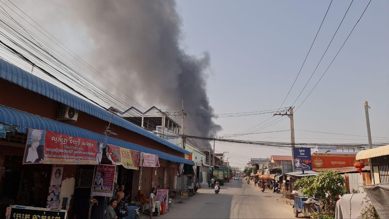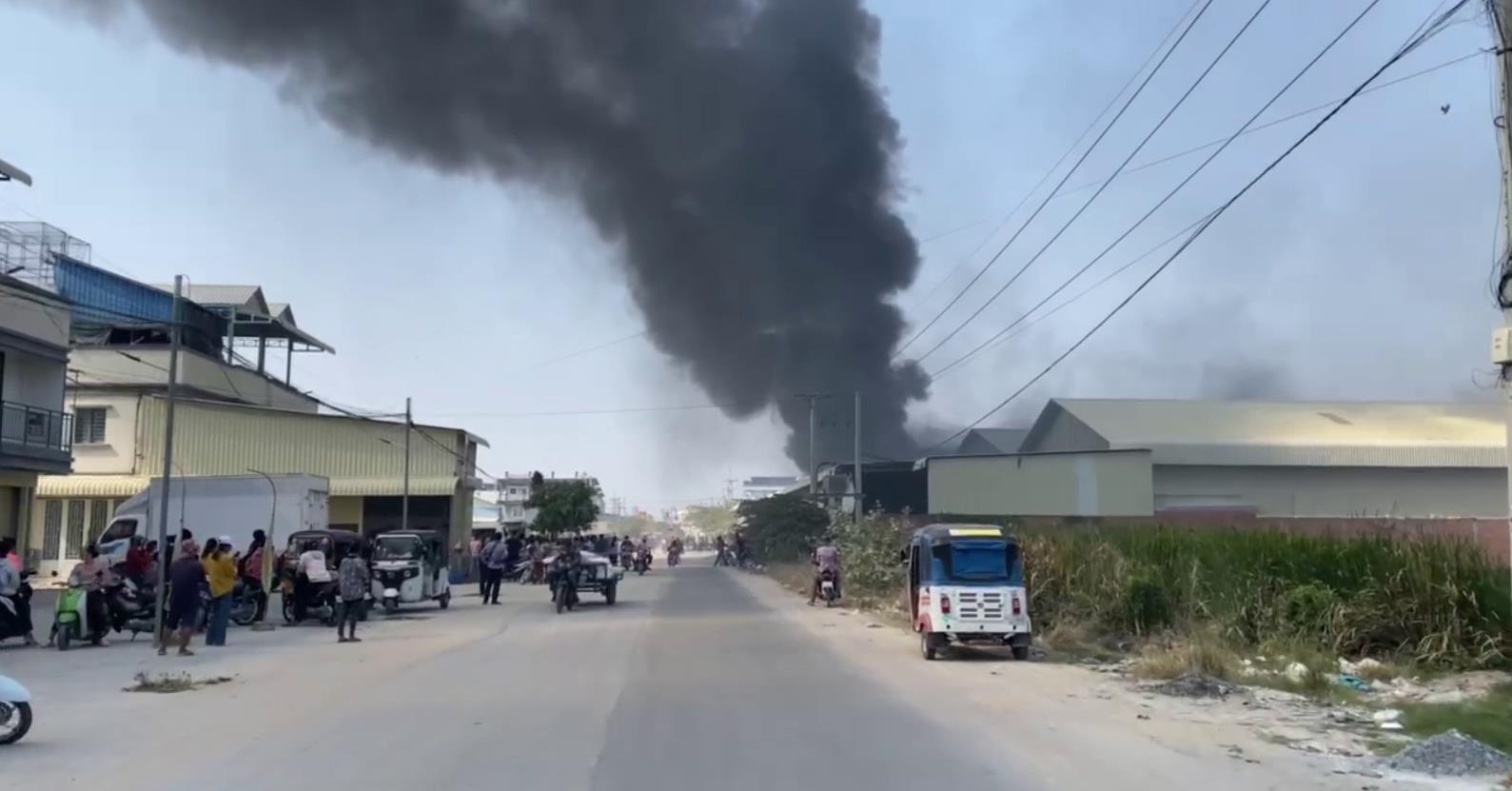 BREAKING: អគ្គិភ័យកំពុងឆេះរោងចក្រកាត់ដេរយ៉ាងសន្ធោសន្ធៅ នៅសង្កាត់កាកាប២ ខណ្ឌពោធិ៍សែនជ័យ, កម្លាំងសមត្ថកិច្ចកំពុងចេញអន្ដរាគមន៍
