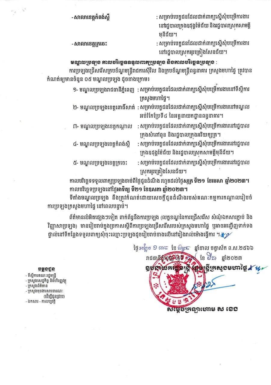 ក្រសួងមហាផ្ទៃ ជូនដំណឹងពីការប្រឡងជ្រើសរើស ក្របខ័ណ្ឌមន្រ្តីរាជការស៉ីវិល និងក្របខ័ណ្ឌមន្រ្តីពន្ធនាគារ នៅមណ្ឌលអប់រំកែប្រែទី៤ នៃអគ្គនាយកដ្ឋានពន្ធនាគារ និងរដ្ឋបាលក្រុងស្រុកថ្មី ចំនួន៥ ដែលទើបត្រូវបានបង្កើតថ្មី
