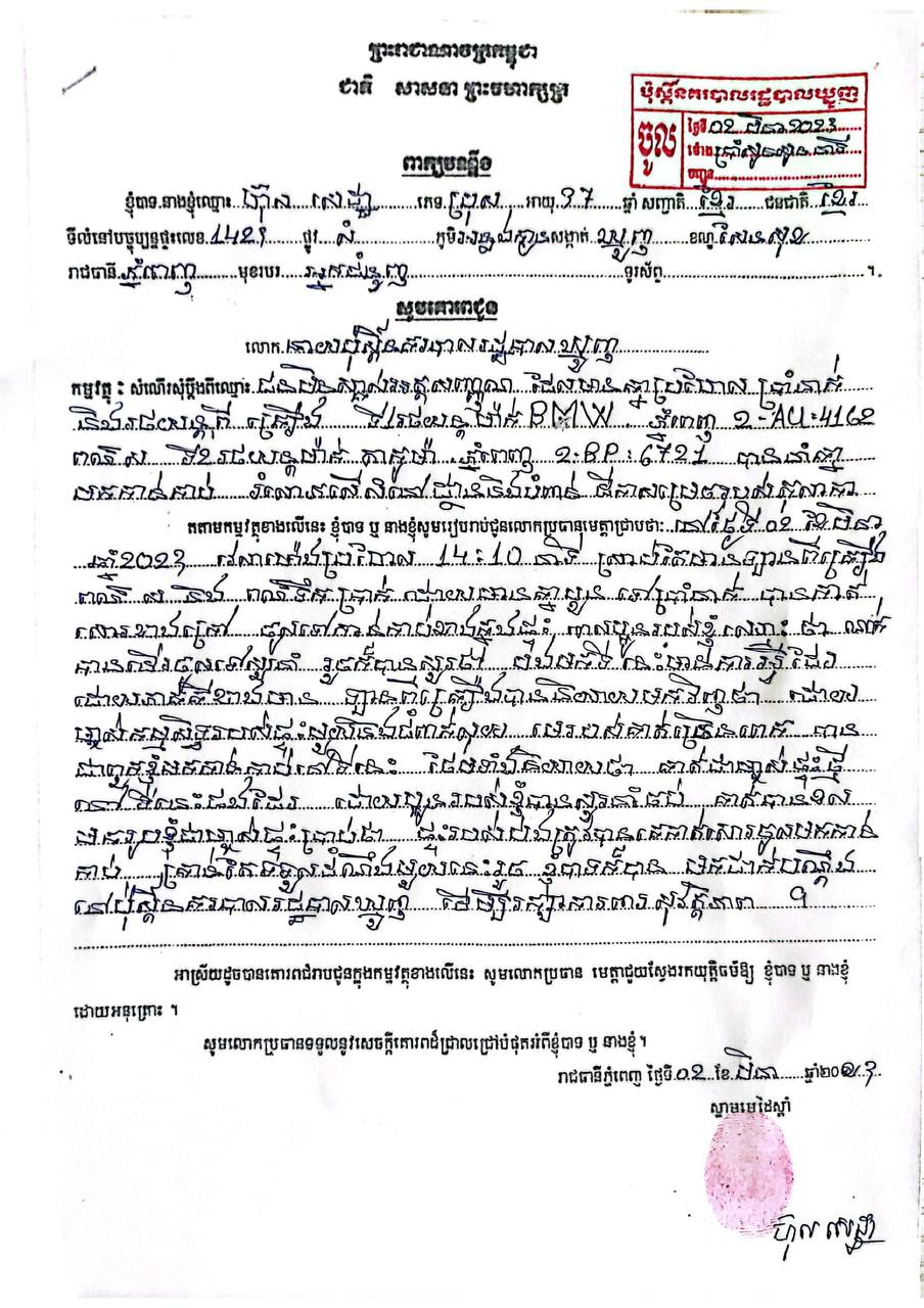 ឃើញសភាពបែបនោះ លោកក៏បានដាក់ពាក្យបណ្ដឹងទៅនាយកដ្ឋានព្រហ្មទណ្ឌ ក្រសួងមហាផ្ទៃ ដើម្បីទប់ស្កាត់សកម្មភាពបំពានច្បាប់ នៅថ្ងៃទី០៣ ខែកុម្ភៈ ឆ្នាំ២០២៣ ហើយនៅថ្ងៃទី០៤ ខែកុម្ភៈ ឆ្នាំ២០២៣ វេលាម៉ោង ០២រសៀល ក្រុមមន្ត្រីនគរបាលព្រហ្មទណ្ឌ ក៏បានចុះមកឃាត់ខ្លួនពួកគេទាំងនោះ ទៅសួរនាំនៅក្រសួង តែក្រោយមកក៏មានអន្តរាគមន៍ដោះលែង ដែលធ្វើឲ្យជនសង្ស័យប្រព្រឹត្តិបទល្មើសទាំងនោះស្ថិតនៅក្រៅឃុំ។