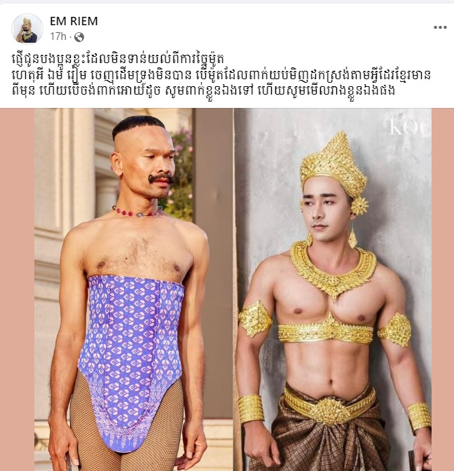 ឯកឧត្តម ជុំ កុសល លើកឡើងថាការស្លៀកពាក់របស់លោក ឯម រៀម គឺជាការបង្ហាញជំនាញរបស់គាត់ដែលច្នៃម៉ូតបែបស្រមើស្រមៃ
