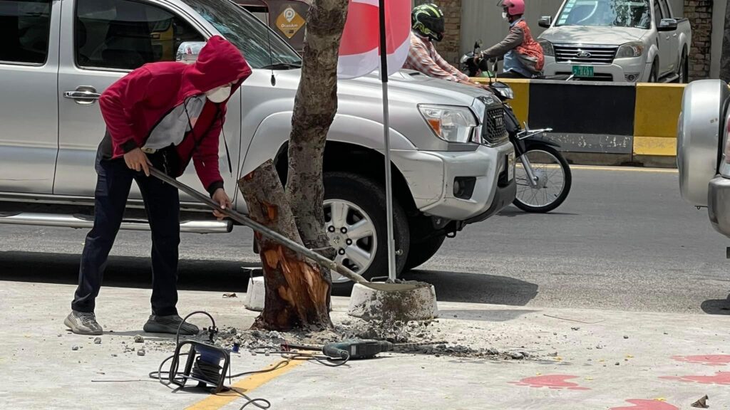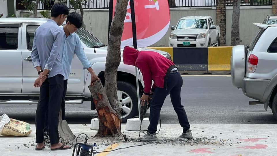 រដ្ឋបាលខណ្ឌទួលគោកចុះទៅណែនាំម្ចាស់ហាង ដែលចាក់បេតុងហ៊ុំដើមឈើ និងឱ្យរុះរើបេតុងនោះចេញវិញ