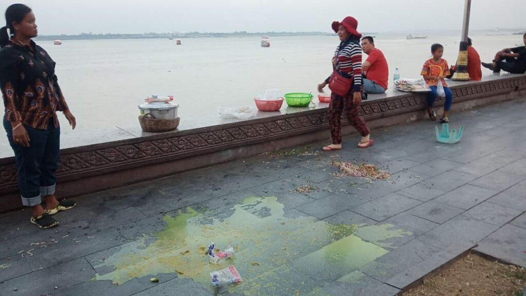 ២-ការលក់ដូរគ្មានអនាម័យ មិនមានការវេចខ្ចប់កាកសំណល់ព្រមទាំងចោលថង់ប្លាស្ទិក ចានស្នោនៅនឹងកន្លែងលក់ ដោយមិនយកទៅទុកដាក់ក្នុងធុងសំរាមដែលនៅក្បែរនោះឡើយ។