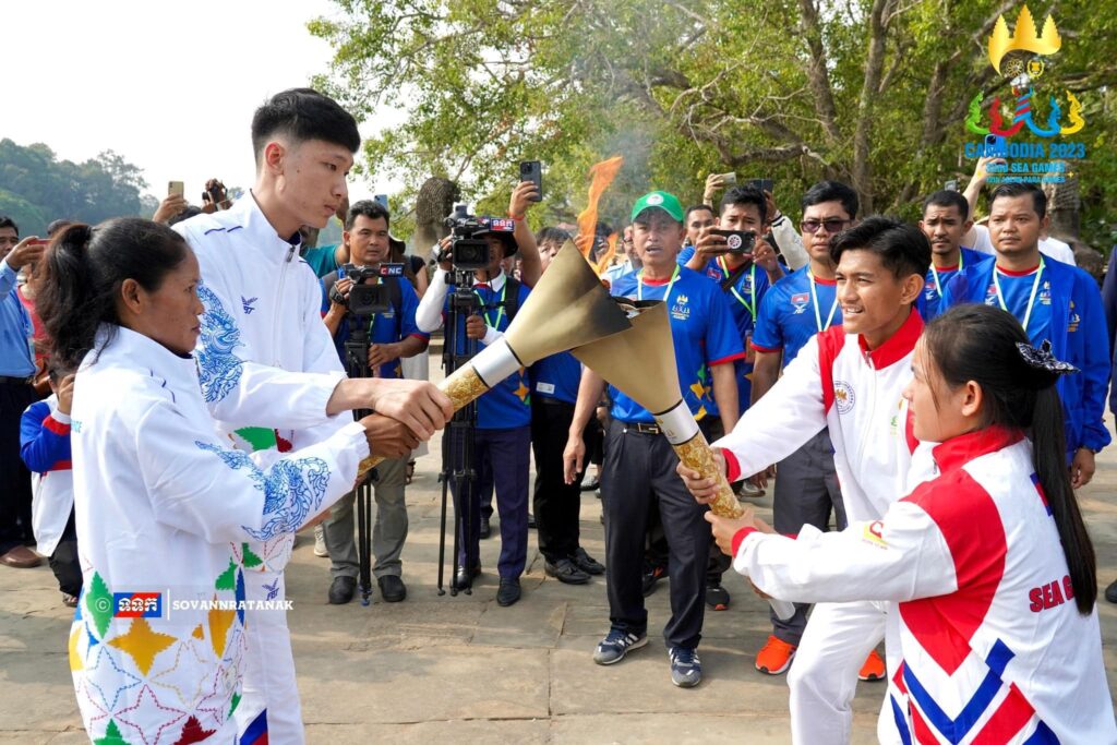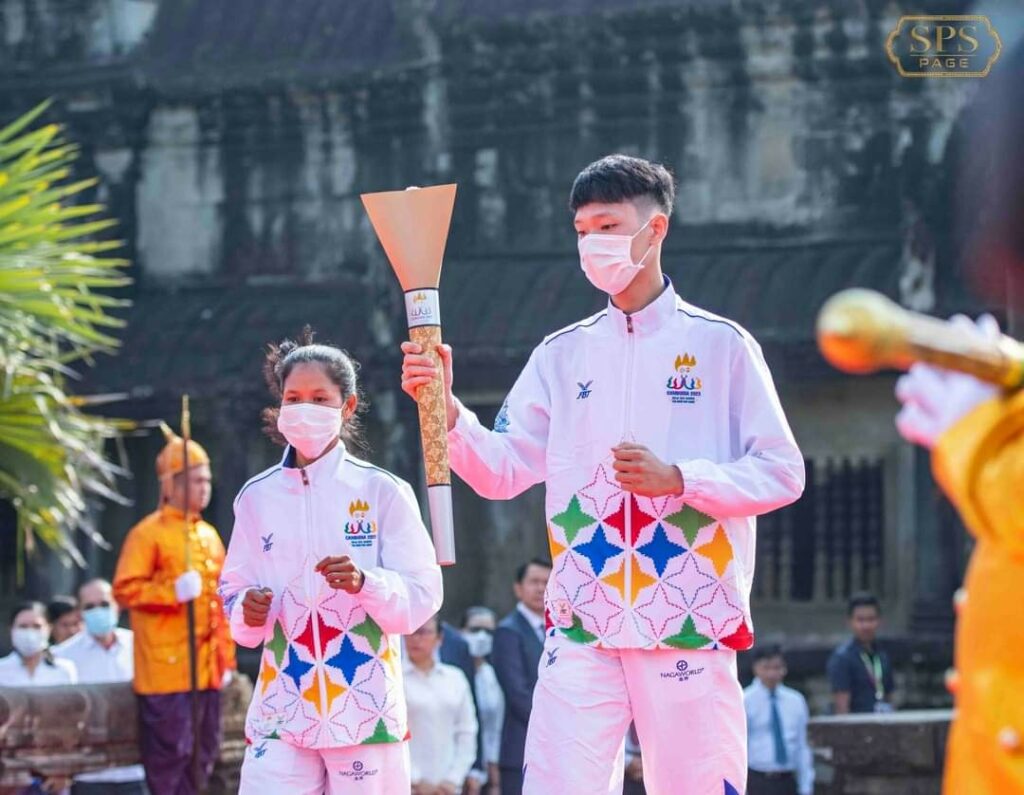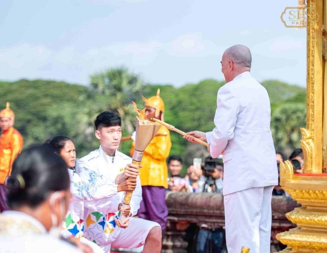 (សៀមរាប)៖ ព្រះករុណា ព្រះមហាក្សត្រនៃព្រះរាជាណាចក្រកម្ពុជា ជាទីគោរពសក្ការៈដ៏ខ្ពង់ខ្ពស់បំផុតស្ដេចយាងជាព្រះរាជាធិបតី ក្នុងព្រះរាជពិធីប្រោសព្រះរាជទានព្រះអគ្គិជ័យកីឡានៅមុខប្រាសាទអង្គរវត្ត សម្រាប់ព្រឹត្តិការណ៍ប្រកួតកីឡាអាស៊ីអាគ្នេយ៍លើកទី៣២ និងកីឡាអាស៊ានប៉ារ៉ាហ្គេមលើកទី១២ ឆ្នាំ២០២៣។