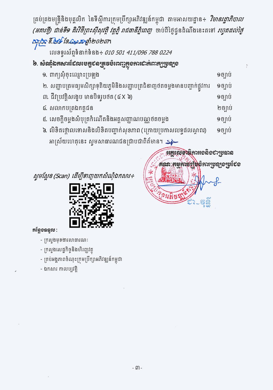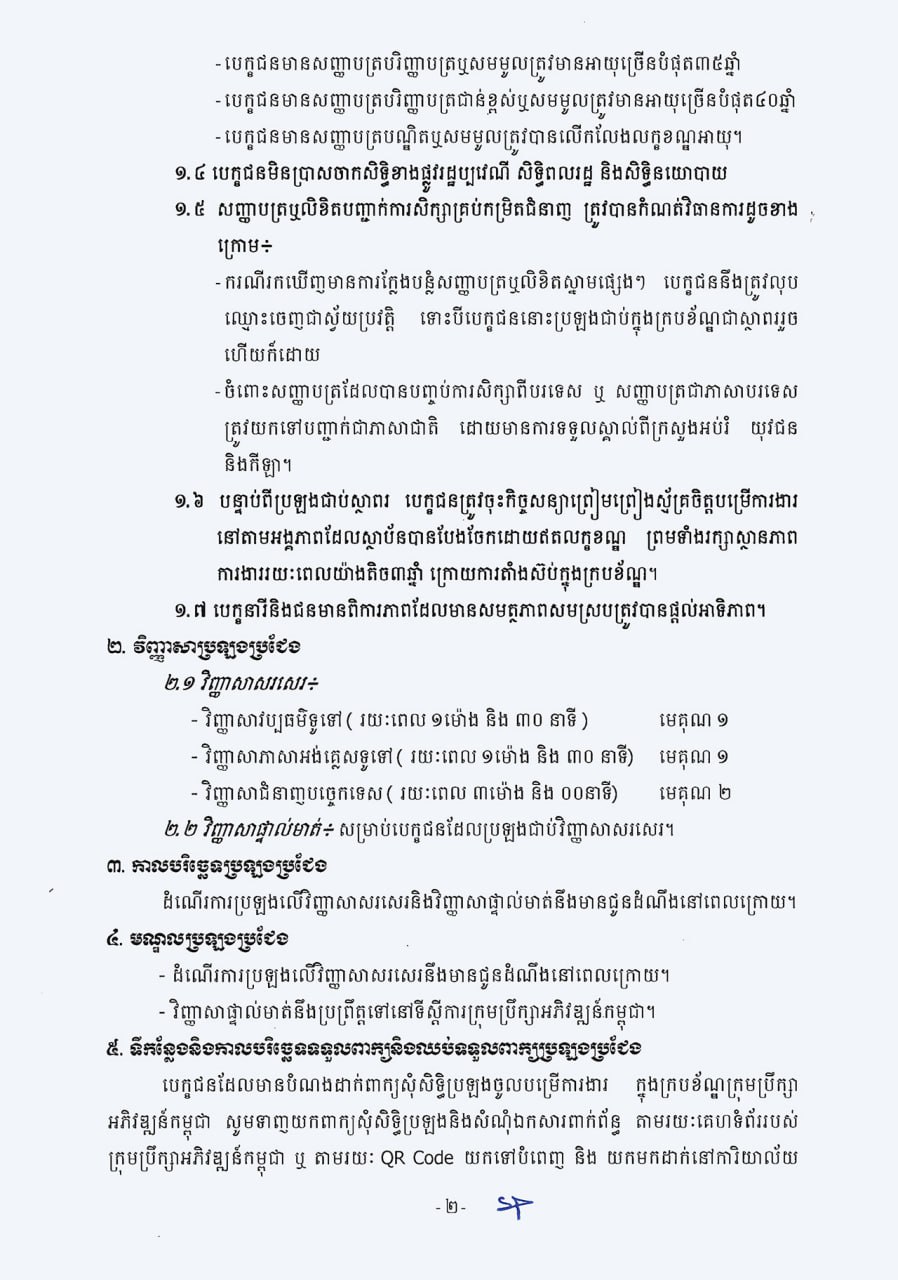 (ភ្នំពេញ)៖ ក្រុមប្រឹក្សាអភិវឌ្ឍន៍កម្ពុជា នៅថ្ងៃទី២៣ ខែមីនា ឆ្នាំ២០២៣ បានចេញសេចក្តីជូនដំណឹងស្តីពីការប្រឡងជ្រើសរើសមន្ត្រីរាជការស៊ីវិលក្របខ័ណ្ឌថ្មី ចំនួន ៦កន្លែង របស់ក្រុមប្រឹក្សាអភិវឌ្ឍន៍កម្ពុជា។ តំណភ្ជាប់ទាញយកឯកសារ៖ https://cdc.gov.kh/…/2023/03/CDC-Application-Form-2023.pdf