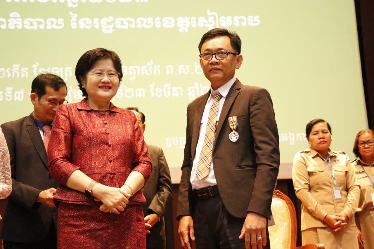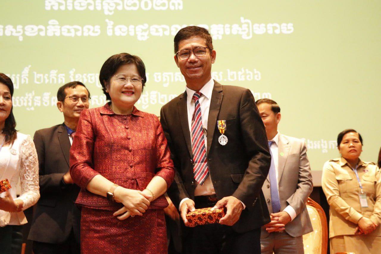 ក្នុងឱកាសនោះដែរ លោកស្រីបានផ្តល់កិត្តិយសបំពាក់នូវគ្រឿងឥស្សរិយយស ជូនដល់មន្ត្រីនៃមន្ទីរសុខាភិបាលខេត្ត គ្រូពេទ្យនៃមន្ទីរពេទ្យបង្អែក ក្នុងស្រុកប្រតិបត្តិទាំងបួន និងមណ្ឌលសុខភាព ដែលមានស្នាដៃបំពេញការងារប្រមាណជាង៤០រូបផងដែរ។