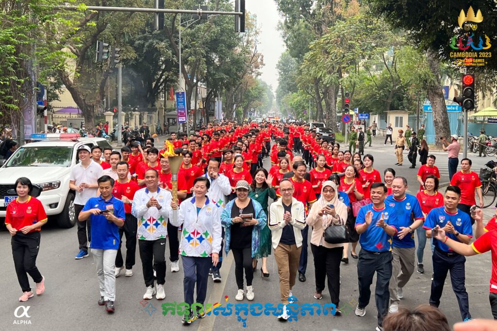 (ហាណូយ)៖ យោងតាម Cambodia 2023 ពិធីរត់ដង្ហែភ្លើងគប់ ស៊ីហ្គេម-អាស៊ានប៉ារ៉ាហ្គេម ឆ្នាំ២០២៣ ចាប់ផ្តើមនៅទីក្រុងហាណូយ ប្រទេសវៀតណាម នៅថ្ងៃទី២៤ ខែមីនា។