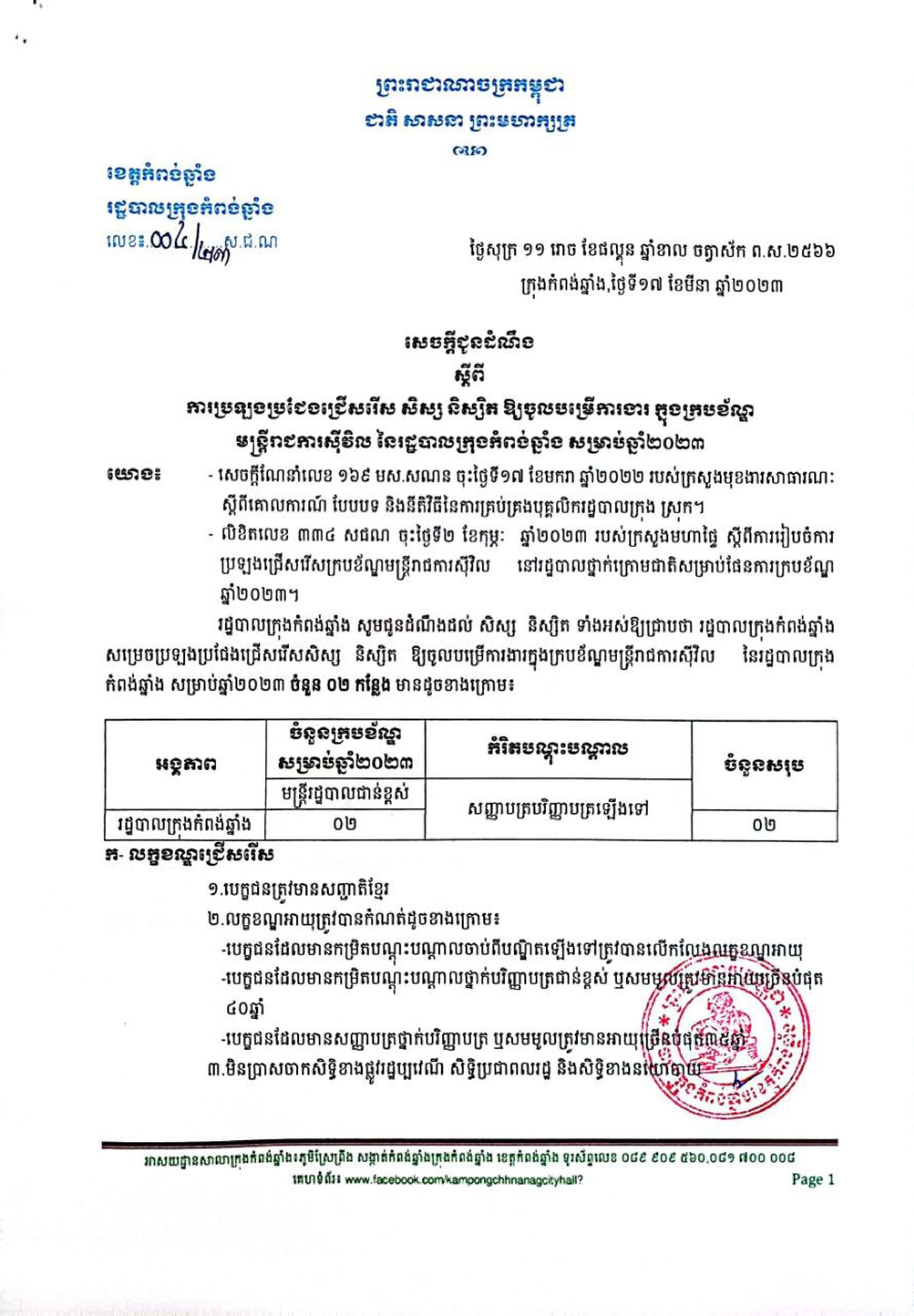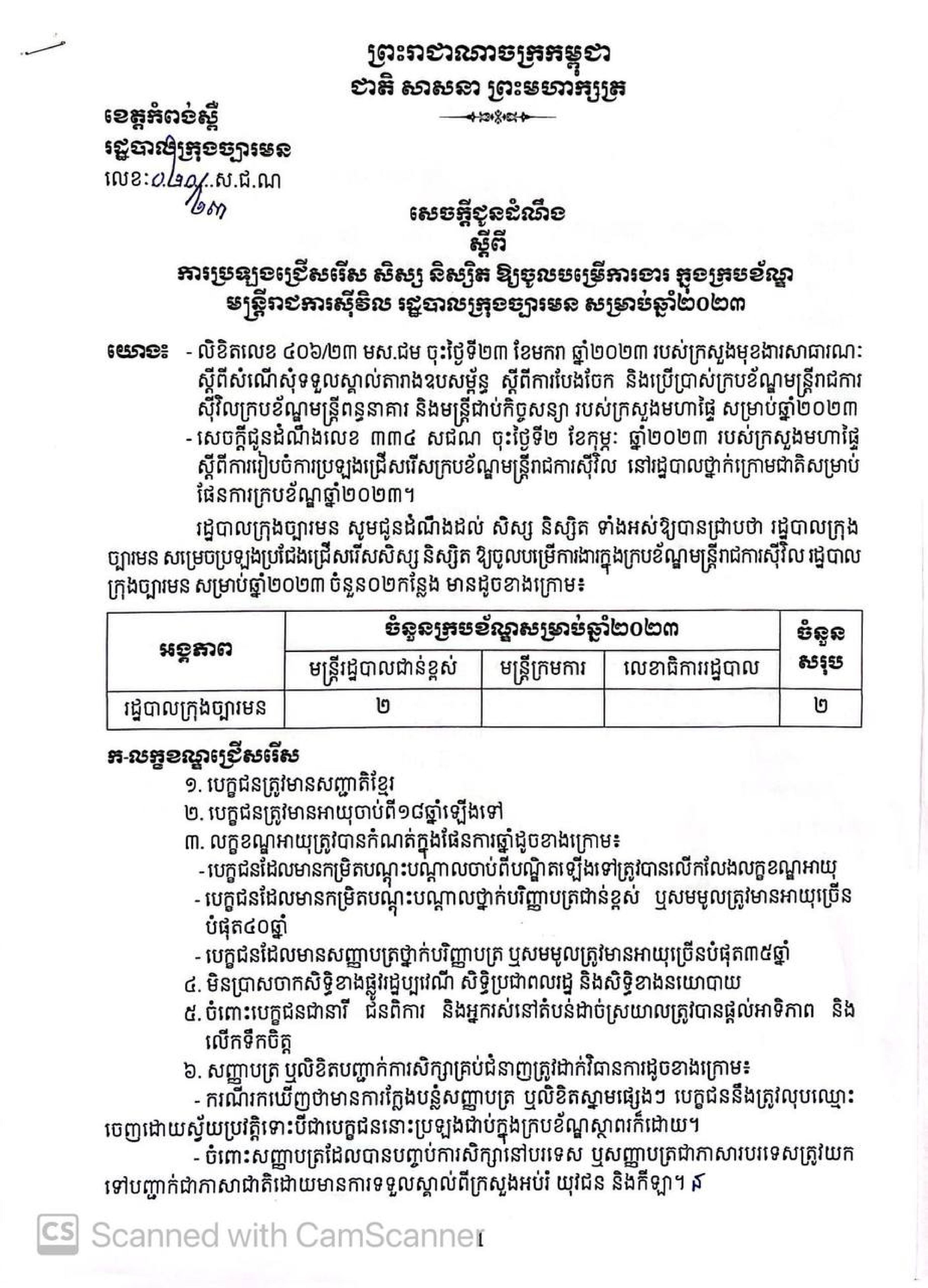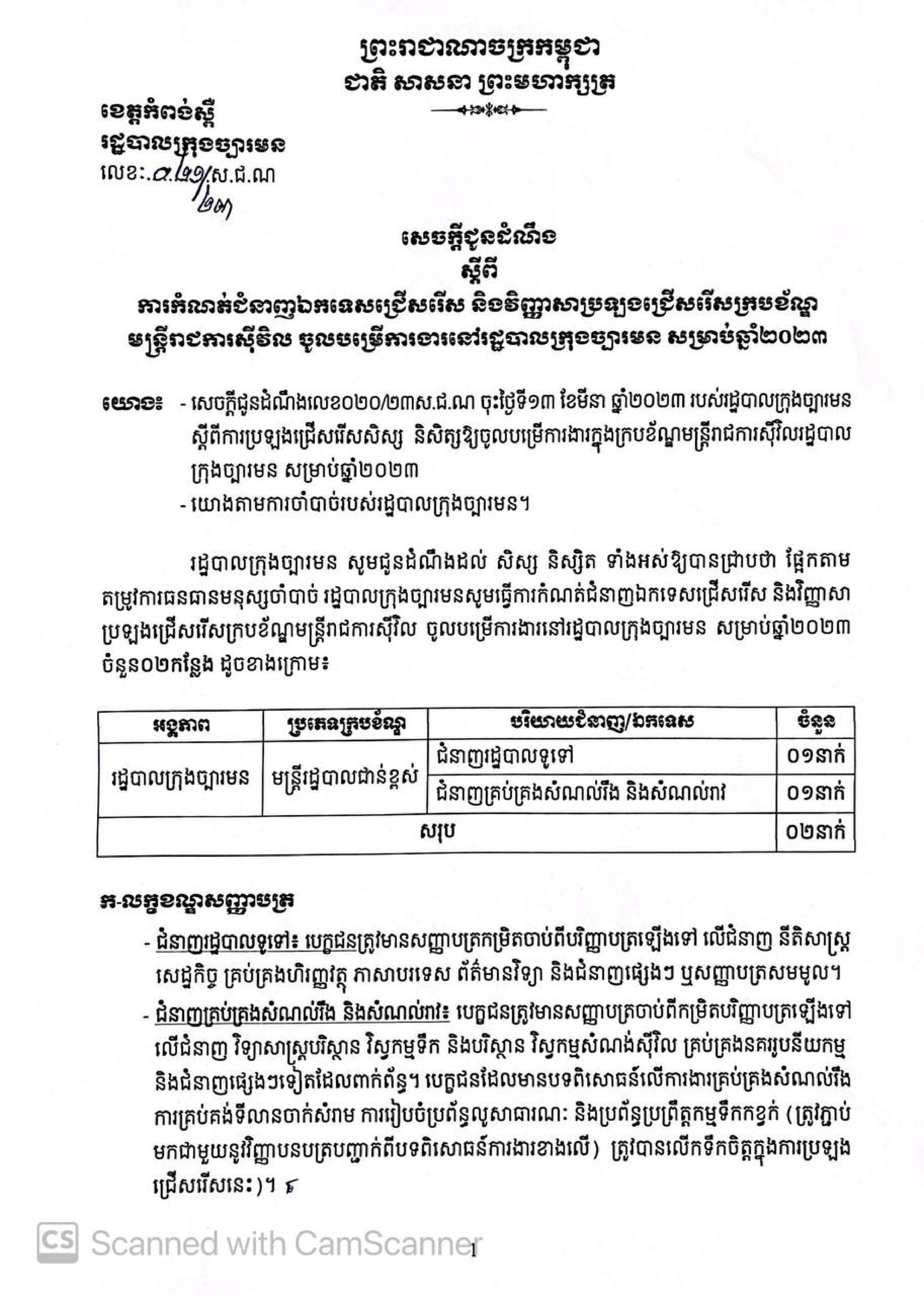 ៨. ជំនាញគ្រប់គ្រងសំណល់រឹង ចំនួន ០១ នាក់ (រដ្ឋបាលក្រុងច្បារមន)។ ផ្តល់សិទ្ធិដោយ៖ freshnews