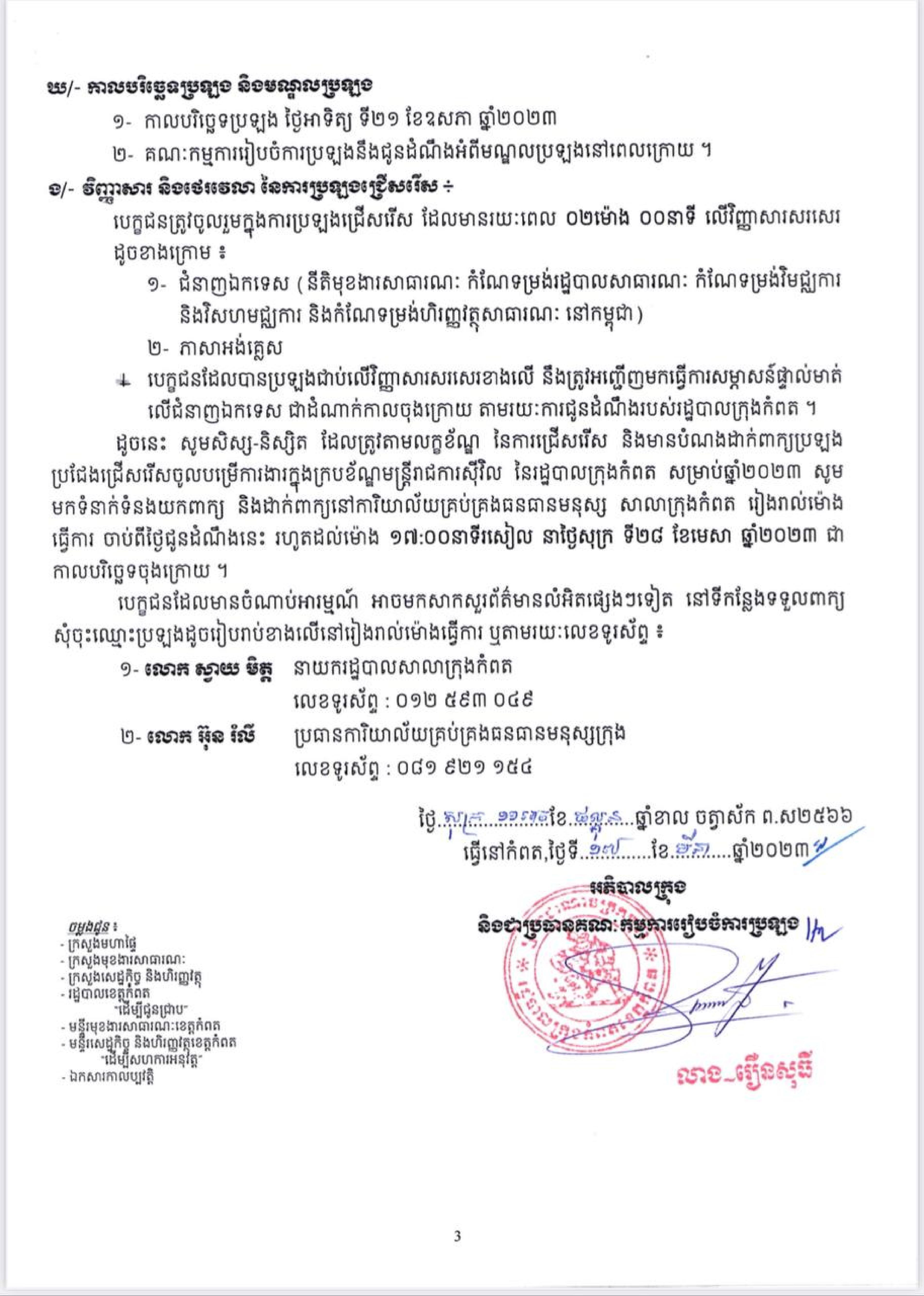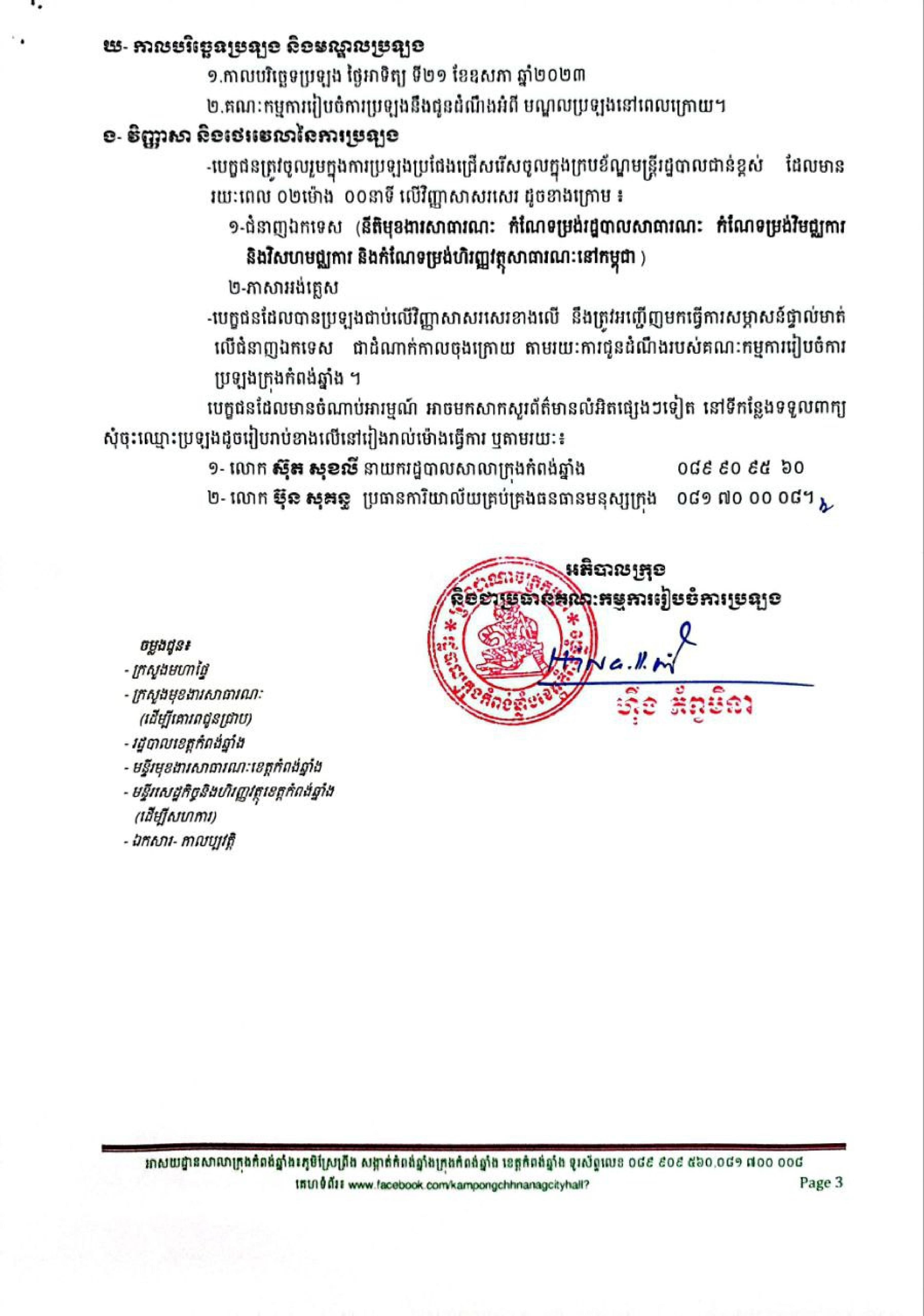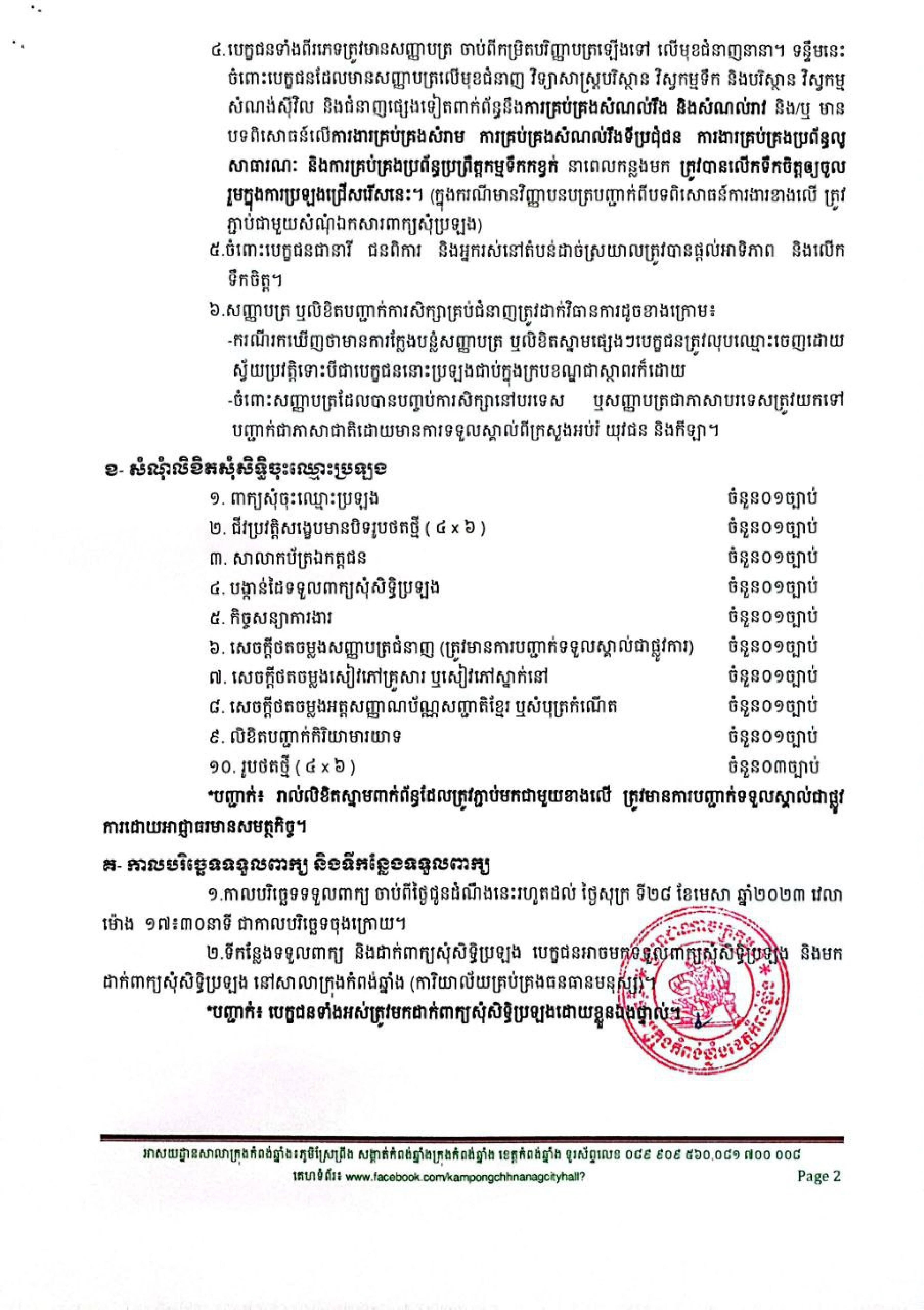 ៨. ជំនាញគ្រប់គ្រងសំណល់រឹង ចំនួន ០១ នាក់ (រដ្ឋបាលក្រុងច្បារមន)។ ផ្តល់សិទ្ធិដោយ៖ freshnews