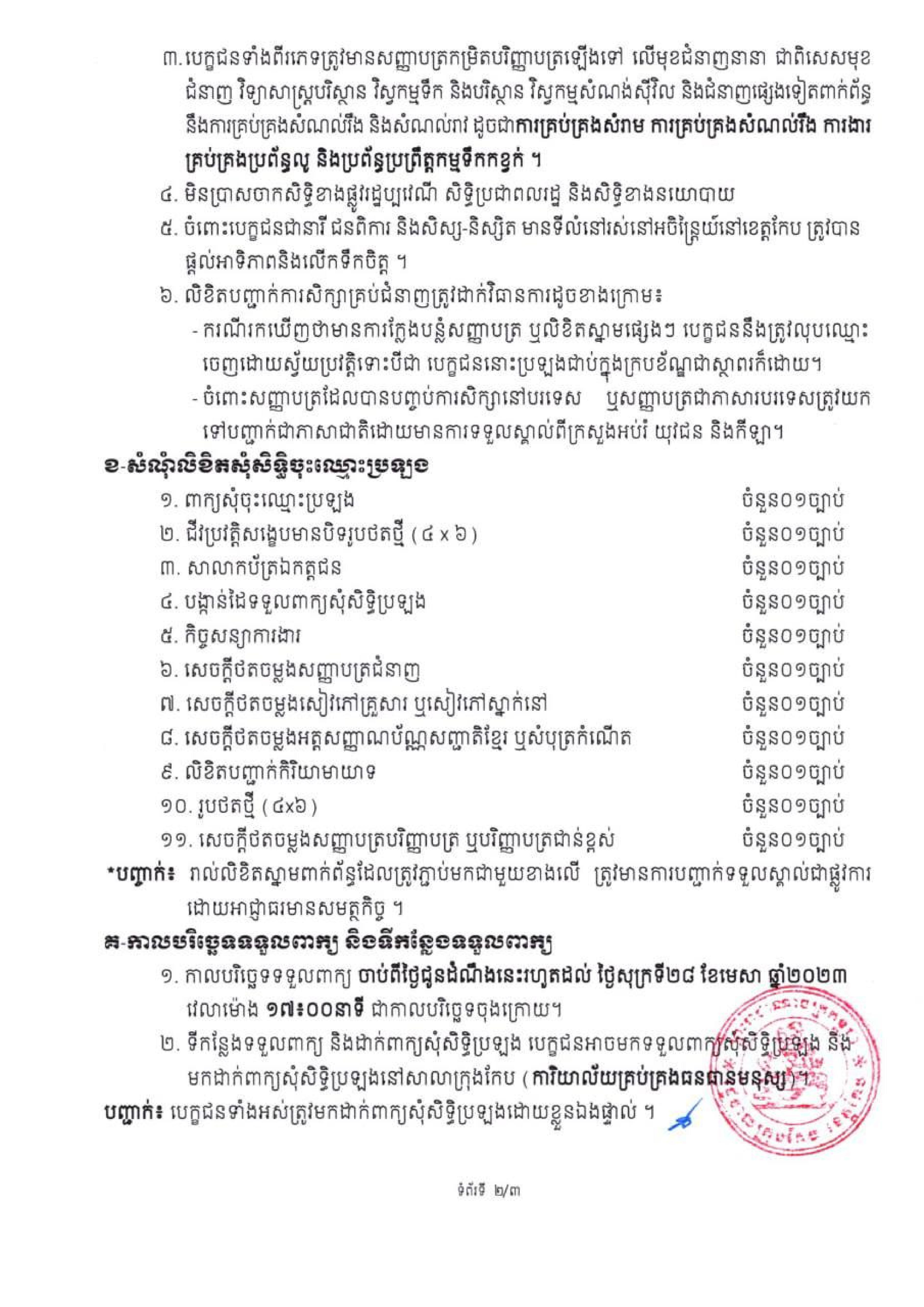 ខាងក្រោមនេះ ជាសេចក្ដីជូនដំណឹង តាមខេត្ដនីមួយៗ ដែលមានខ្លឹមសារទាំងស្រុង៖