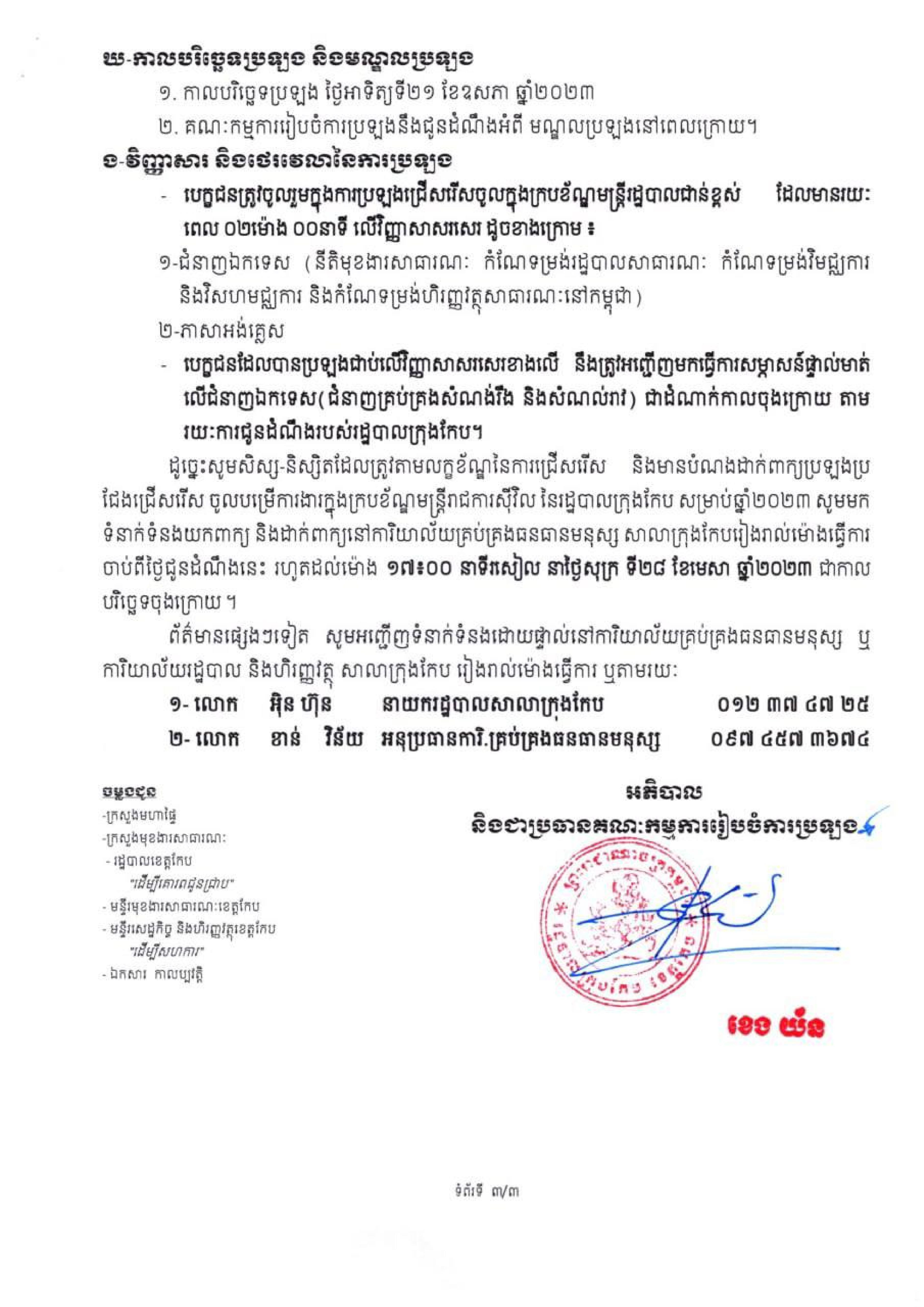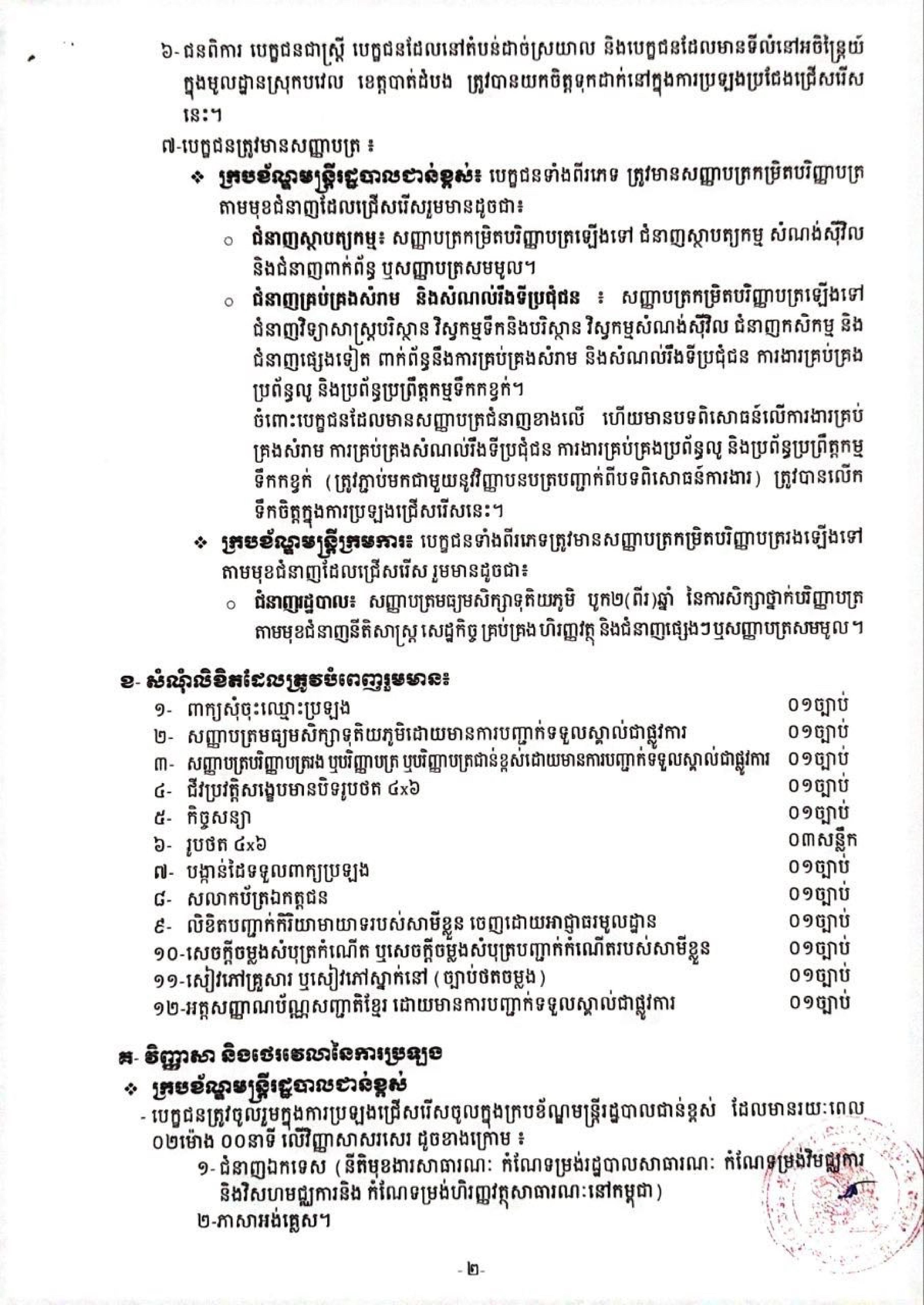 ៦. ជំនាញគ្រប់គ្រងសំណល់រឹង និងរាវ ចំនួន ០២ នាក់ (រដ្ឋបាលក្រុងកែប)