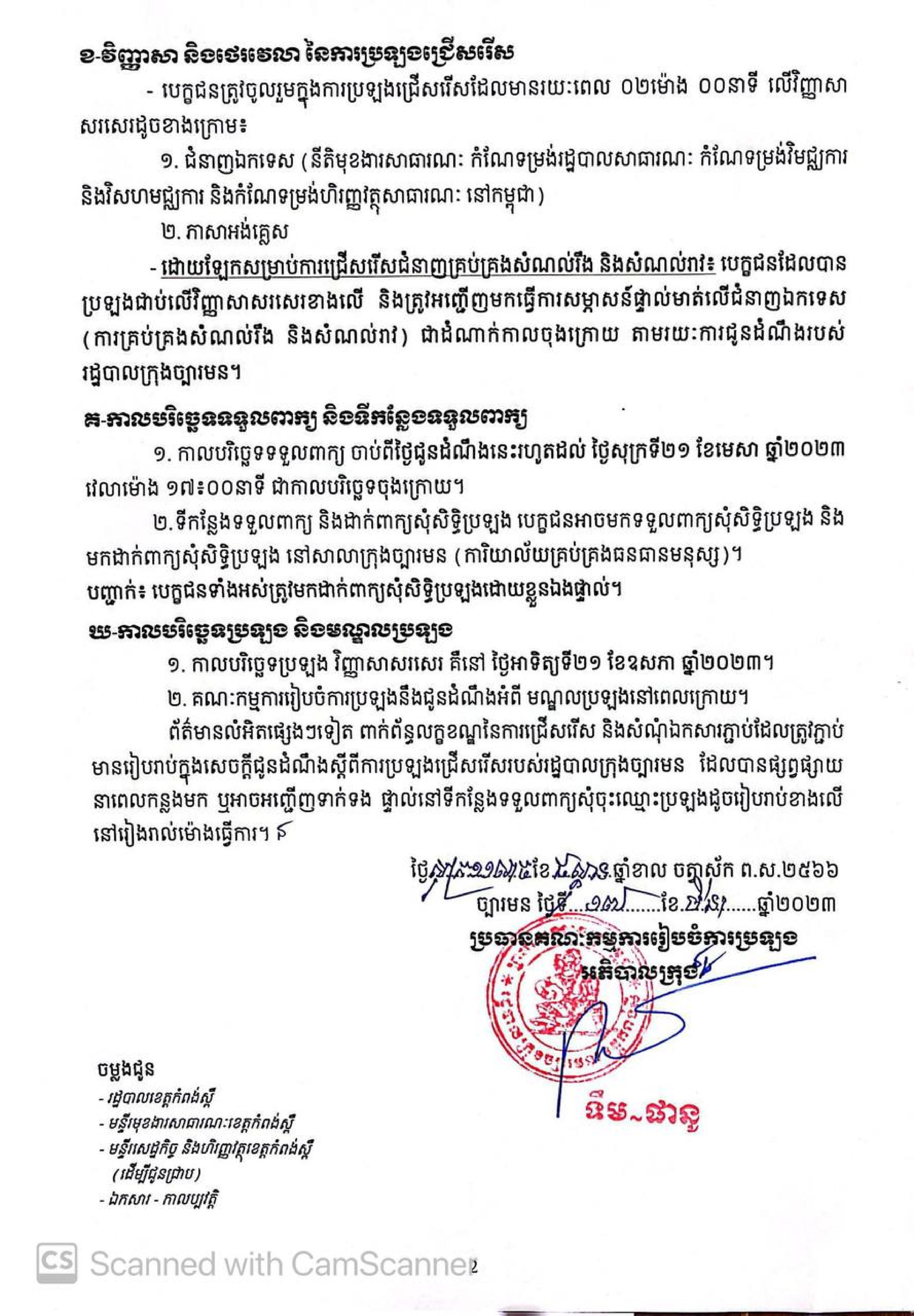 ៥. ជំនាញគ្រប់គ្រងសំណល់រឹង និងរាវ ចំនួន ០២ នាក់ (រដ្ឋបាលក្រុងកំពង់ឆ្នាំង)