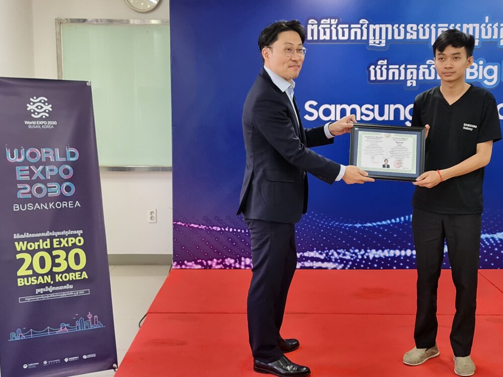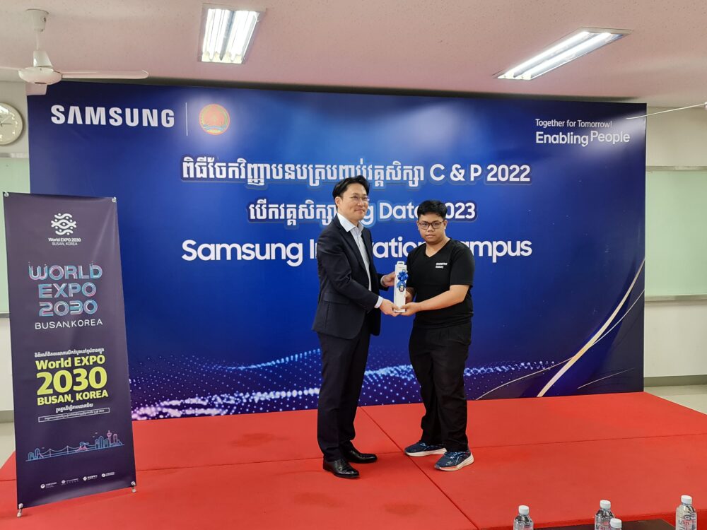 (ភ្នំពេញ) ថ្ងៃទី ៣១ ខែមីនា ឆ្នាំ២០២៣៖ ក្រោយពីការដាក់សម្ពោធឲ្យដំណើរការជាផ្លូវការនូវកម្មវិធី “Samsung Innovation Campus” របស់ក្រុមហ៊ុន សាមសុង កាលពីឆ្នាំ 2022 រួចមក ថ្ងៃនេះក្រុមហ៊ុន សាមសុង និងសាកលវិទ្យាល័យភូមិន្ទភ្នំពេញបានរៀបចំពីធីចែកវិញ្ញាបនបត្រជូនដល់និស្សិតដែលបញ្ចប់វគ្គសិក្សា “Cording & Programming” ឆ្នាំ 2022 និងប្រកាសបើកវគ្គសិក្សាថ្មី Big Data ផងដែរ ។ កម្មវិធីនេះត្រូវបានប្រព្រឹត្តឡើងក្នុងបរិវេណសាកលវិទ្យាល័យភូមិន្ទភ្នំពេញ នៅមជ្ឈមណ្ឌលសហប្រតិបត្តិការកម្ពុជា-កូរ៉េ (CKCC) ក្រោមអធិបតីភាព ឯកឧត្តមបណ្ឌិត ជេត ជាលី សាកលវិទ្យាធិការនៃសាកលវិទ្យាល័យភូមិន្ទភ្នំពេញ និងលោក Hyun Geun Lee អគ្គនាយកសាខាក្រុមហ៊ុនថៃសាមសុងអេឡិកត្រូនិកប្រចាំប្រទេសកម្ពុជា ។ កម្មវិធីចែកវិញ្ញាបនបត្រនេះធ្វើឡើងជូនដល់សិស្សនិស្សិតចំនួន 60 នាក់ ដែលបានចូលរួមក្នុងវគ្គសិក្សាតាំងពីខែ សីហា 2022 រហូតដល់ចុងខែ មករា 2023 និងប្រលងបញ្ចប់វគ្គដោយជោគជ័យក្នុងខែកុម្ភៈកន្លងមកនេះ ។ ស្របក្នុងពេលជាមួយគ្នាផងដែរក្រុមហ៊ុន សាមសុងក៏បានប្រកាសបើកវគ្គសិក្សាថ្មីកម្រិតខ្ពស់គឺវគ្គសិក្សា “Big Data” ដែលនឹងចាប់ផ្តើមពីថ្ងៃទី 20 ឧសភា រហូតដល់ដំណាច់ឆ្នាំ 2023 ។