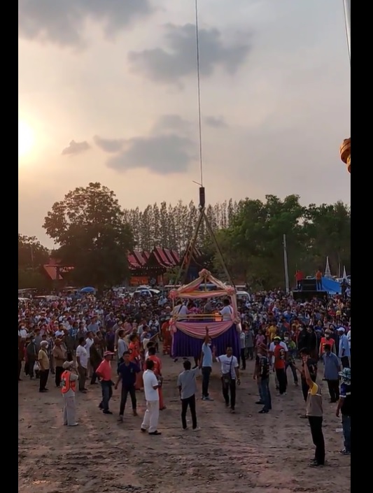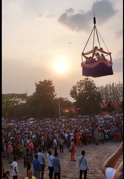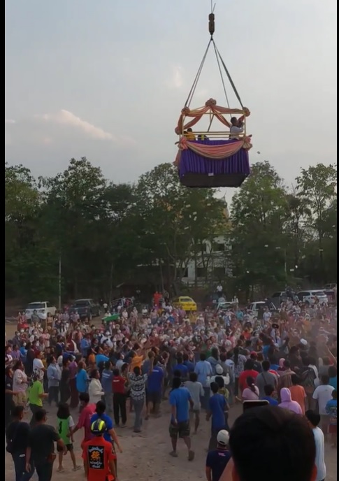យោងតាមការចុះផ្សាយរបស់សារព័ត៌មាន The Thaiger បានឱ្យដឹងថា ក្នុងថ្ងៃចម្រើនព្រះជន្មឆ្នាំ៤៦ និង ប្រារព្ធ២៤ឆ្នាំនៃការស្នាងផួស ចូលបម្រើក្នុងពុទ្ធសាសនា ព្រះសង្ឈថៃ ដែលមានព្រះនាម Phra Khru Phot Suwannarat ហៅ Luang Phor Kaen បានជួលអេស្កាវ៉ាទ័រមកស្ទូចលើកព្រះអង្គឡើងឱ្យខ្ពស់ ហើយស្ថិតនៅក្នុងប្រអប់៤ជ្រុង រុំដោយវាំងនន។