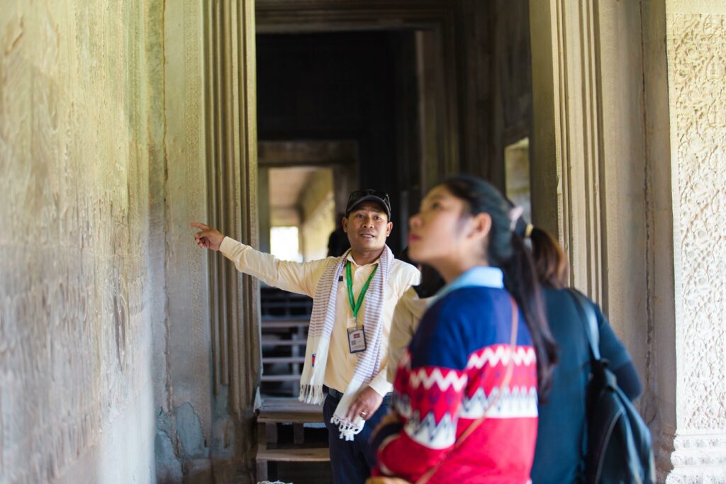 (ភ្នំពេញ)៖ ប្រជាជនភាគច្រើនយល់ថា សេវាកម្មមគ្គុទ្ទេសក៍ទេសចរណ៍ (Tour Guide) គឺសម្រាប់តែភ្ញៀវទេសចរបរទេសប៉ុណ្ណោះ ប៉ុន្តែវាមិនដូច្នោះឡើយ ពីព្រោះថាមគ្គុទ្ទេសក៍ទេសចរណ៍ក៏ជាតម្រូវការដ៏សំខាន់មួយសម្រាប់ភ្ញៀវទេសចរដែលចង់ដឹង ចង់ឮ ចង់យល់អំពីខ្លឹមសារសិលាចារិក ចម្លាក់បដិមា ប្រវត្តិសាស្រ្ត អាថ៌កំបាំង ក៏ដូចជាសិក្សាស្វែងយល់នូវរឿងរ៉ាវនានា។