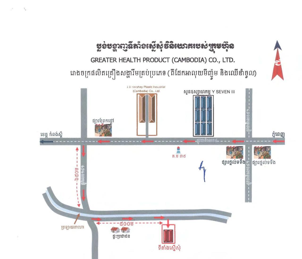 ១១៖ GREATER HEALTH PRODUCT (CAMBODIA) CO., LTD គម្រោងបង្កើតរោងចក្រផលិតគ្រឿងសង្ហារិមគ្រប់ប្រភេទ ដែលមានទីតាំងវិនិយោគស្ថិតនៅភូមិត្រពាំងខ្យង ឃុំត្រពាំងគង ស្រុកសំរោងទង ខេត្តកំពង់ស្ពឺ ក្នុងទុនវិនិយោគប្រមាណ៥.១លានដុល្លារនិងអាចបង្កើតការងារបានចំនួន៣០៤កន្លែង៕ ផ្តល់សិទ្ធិដោយ៖ Fresh News
