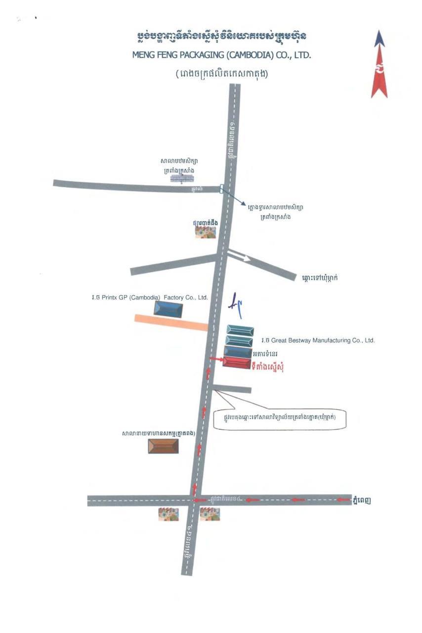 ១០៖ MENG FENG PACKAGING (CAMBODIA) CO., LTD គម្រោងបង្កើតរោងចក្រផលិតកេសកាតុង ដែលមានទីតាំងវិនិយោគស្ថិតនៅផ្លូវជាតិលេខ៥១ ភូមិស្តុកវែង ឃុំម្កាក់ ស្រុកអង្គស្នួល ខេត្តកណ្តាល ក្នុងទុនវិនិយោគប្រមាណ ៥.២លានដុល្លារ និងអាចបង្កើតការងារបានចំនួន ៤៧៥កន្លែង។