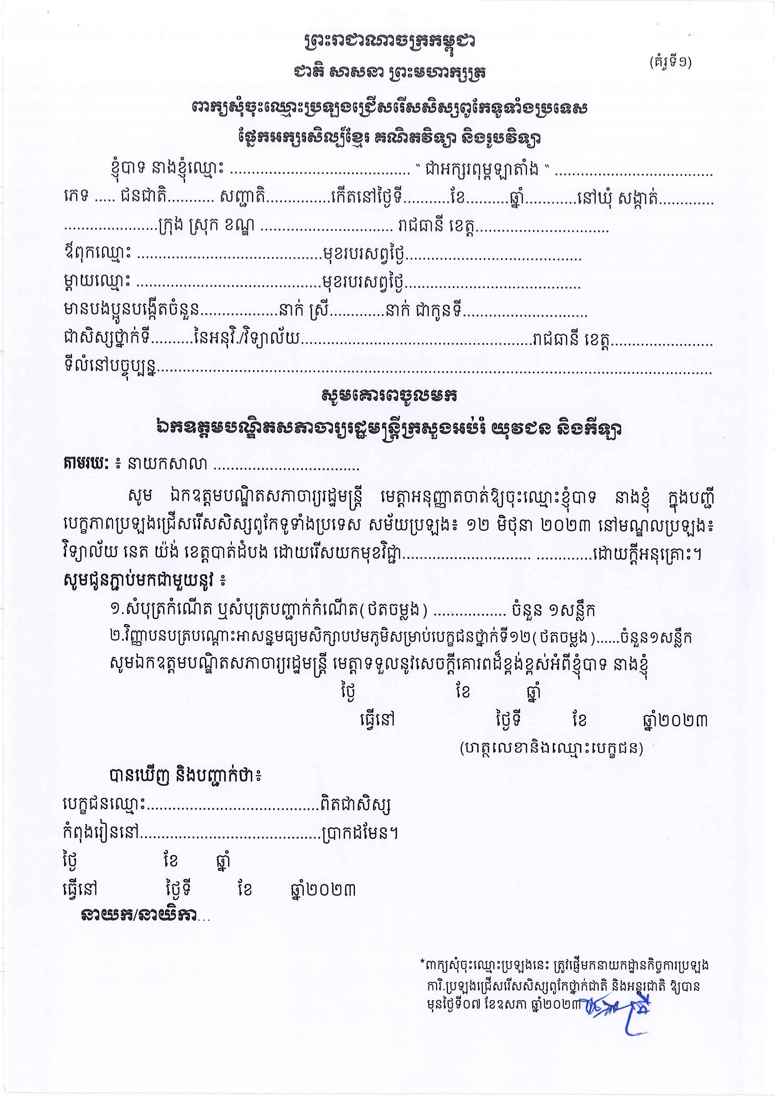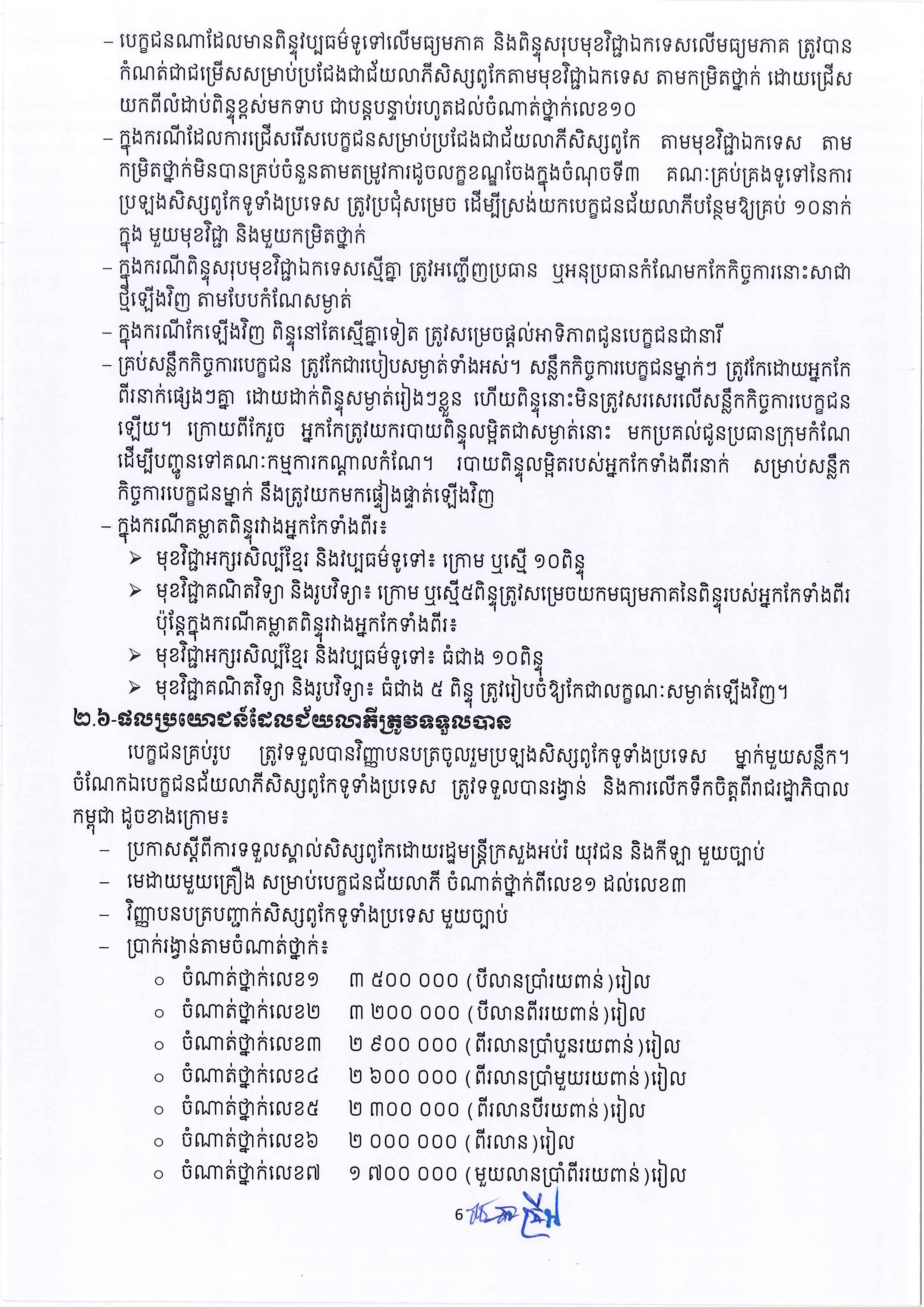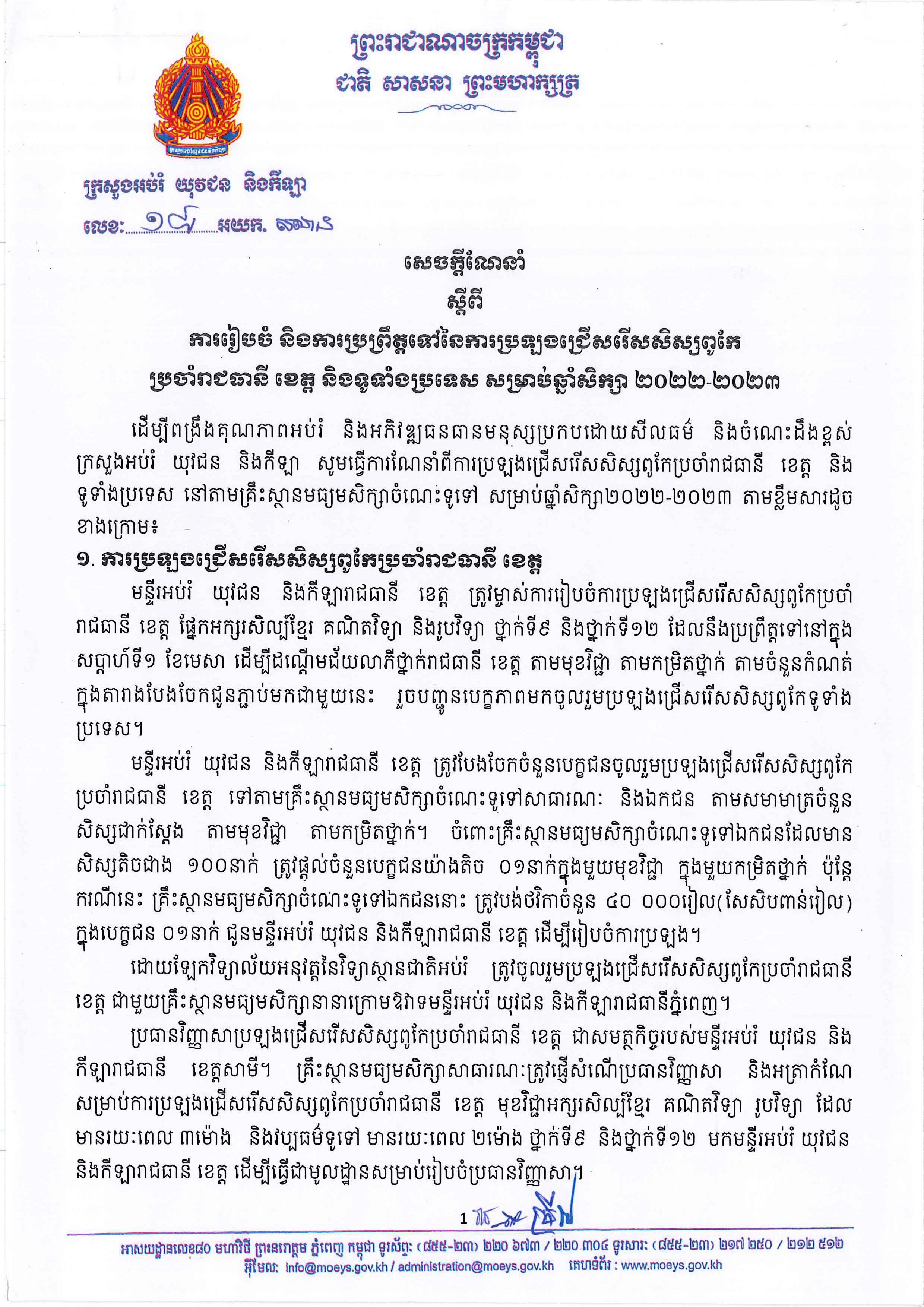 ក្រសួងអប់រំ ចេញសេចក្ដីណែនាំ ស្ដីពីការរៀបចំ និងការប្រព្រឹត្ដទៅនៃការប្រឡងជ្រើរើសសិស្សពូកែ ប្រចាំរាជធានី ខេត្ដ និងទូទាំងប្រទេស