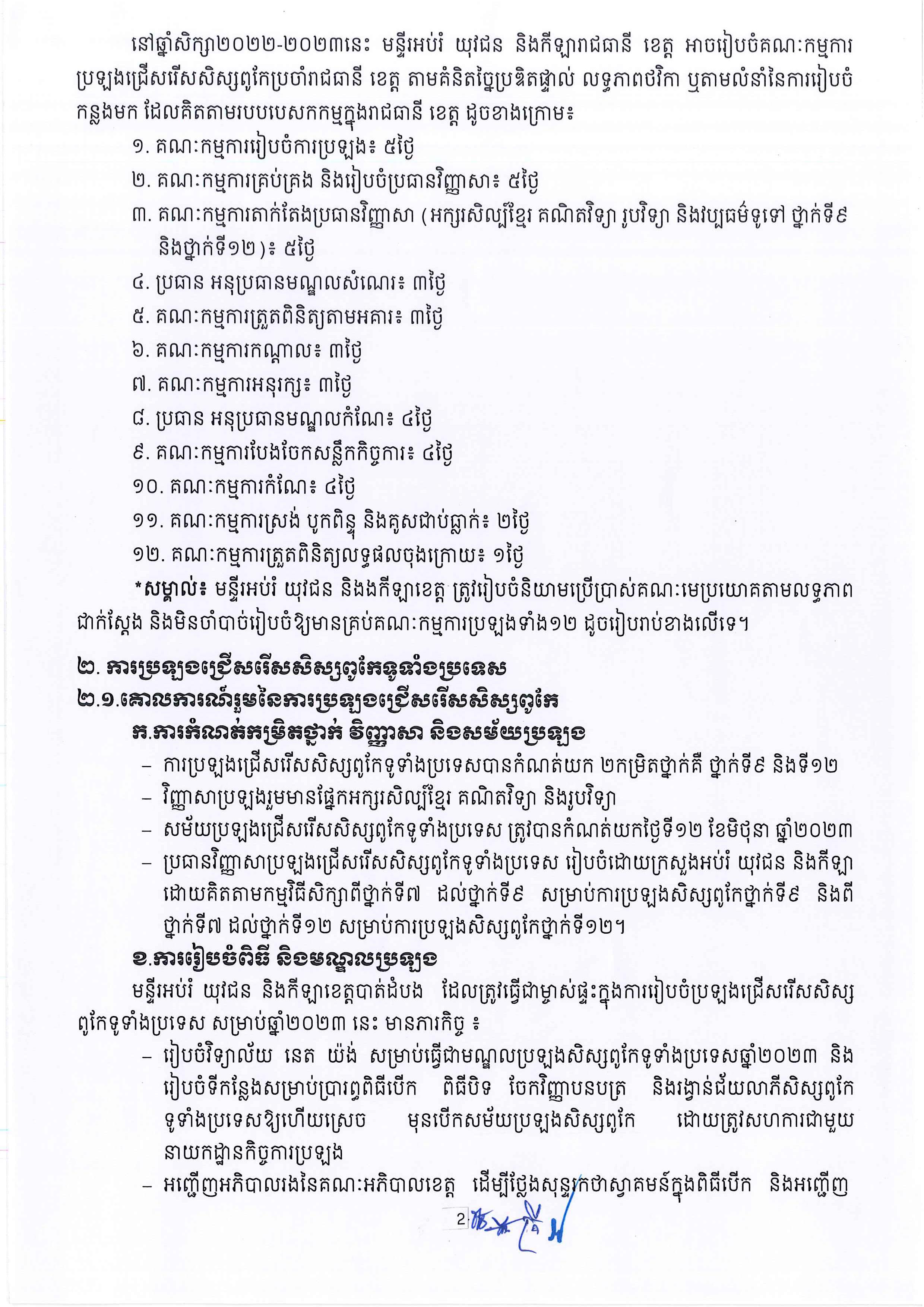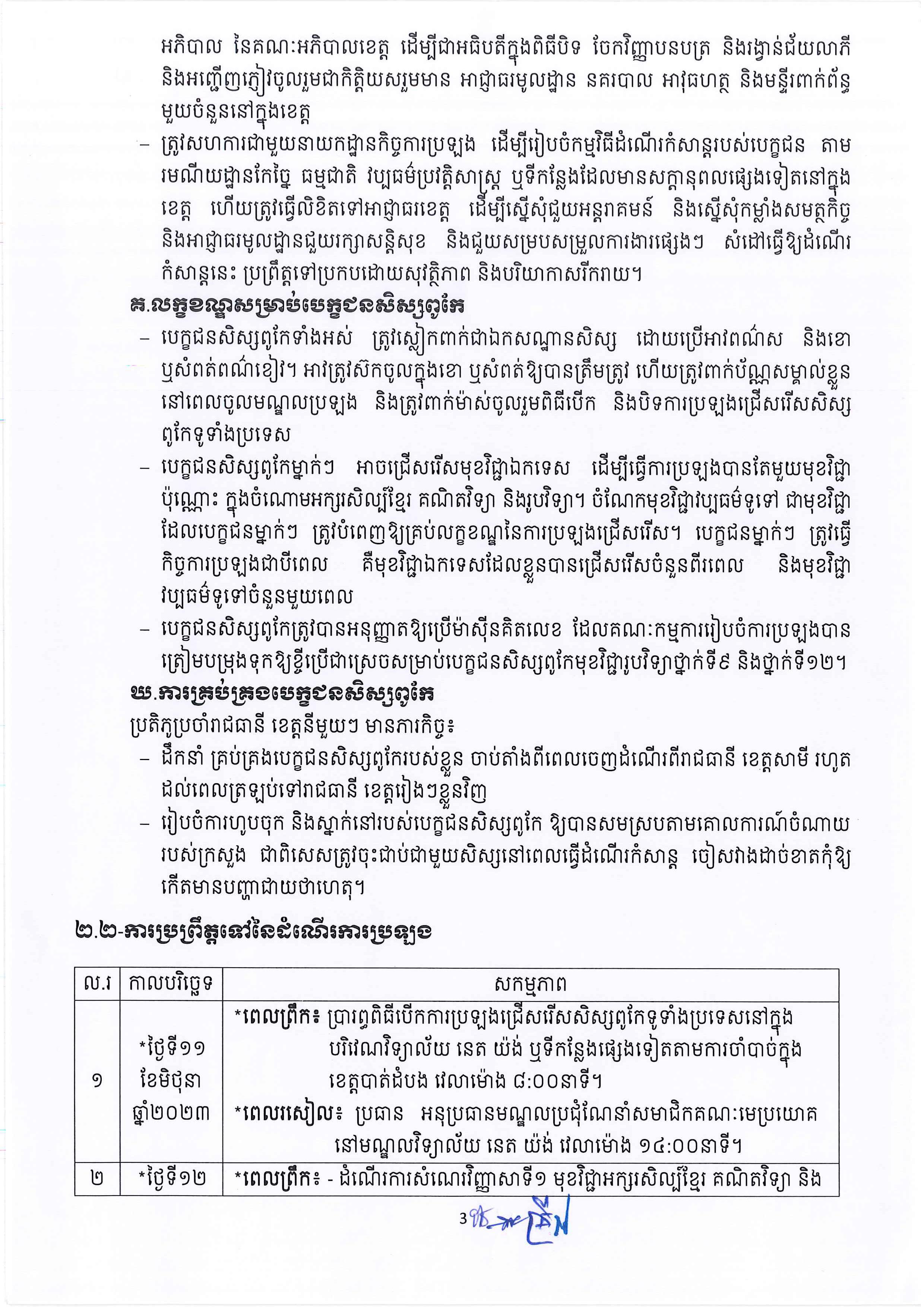 ខាងក្រោមនេះជាសេចក្ដីណែនាំរបស់ក្រសួងអប់រំ៖