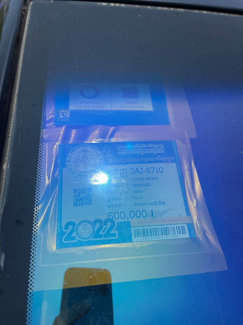 ១- រថយន្តម៉ាក LEXUS RX350 ពណ៌ខ្មៅ ចង្កូតឆ្វេង ឆ្នាំ 2010 ពាក់ស្លាកលេខ ភ្នំពេញ 2AJ-6710