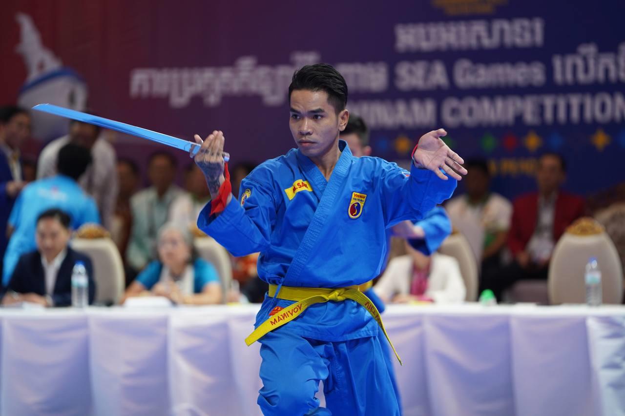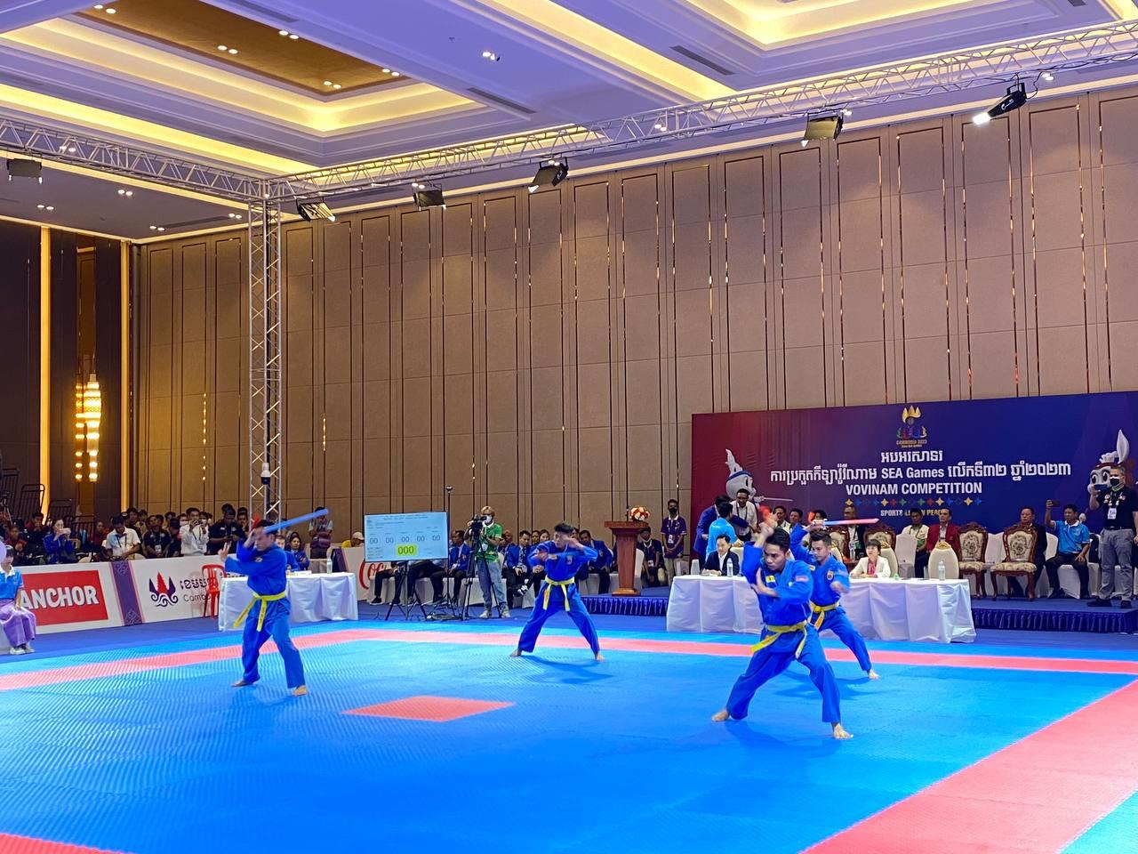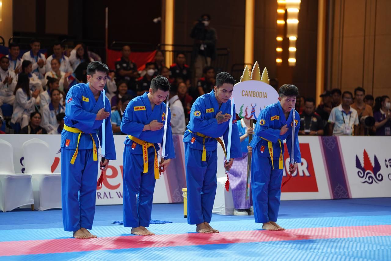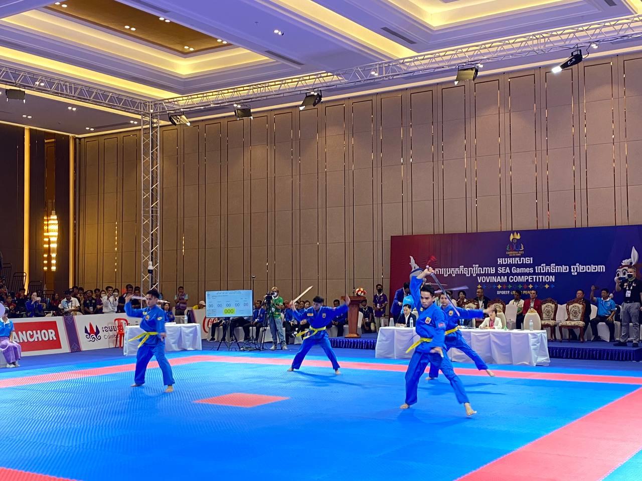 ស៊ីហ្គេម២០២៣៖ កីឡាករវ៉ូវីណាមកម្ពុជា ឈ្នះមេដាយមាស ផ្នែកសម្តែងជាក្រុមបុរស ៤នាក់មានអាវុធ