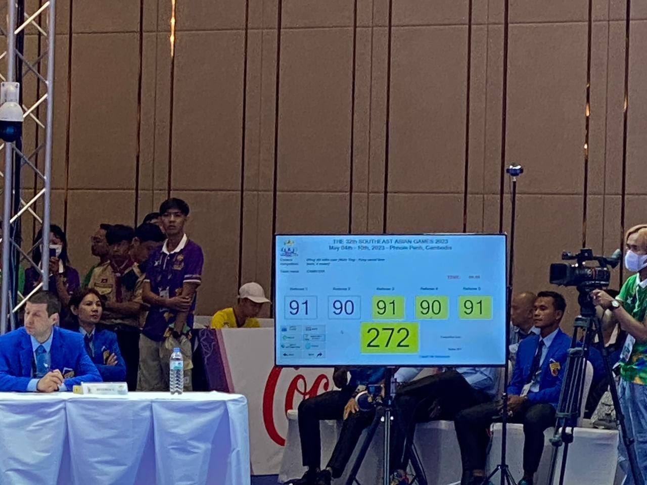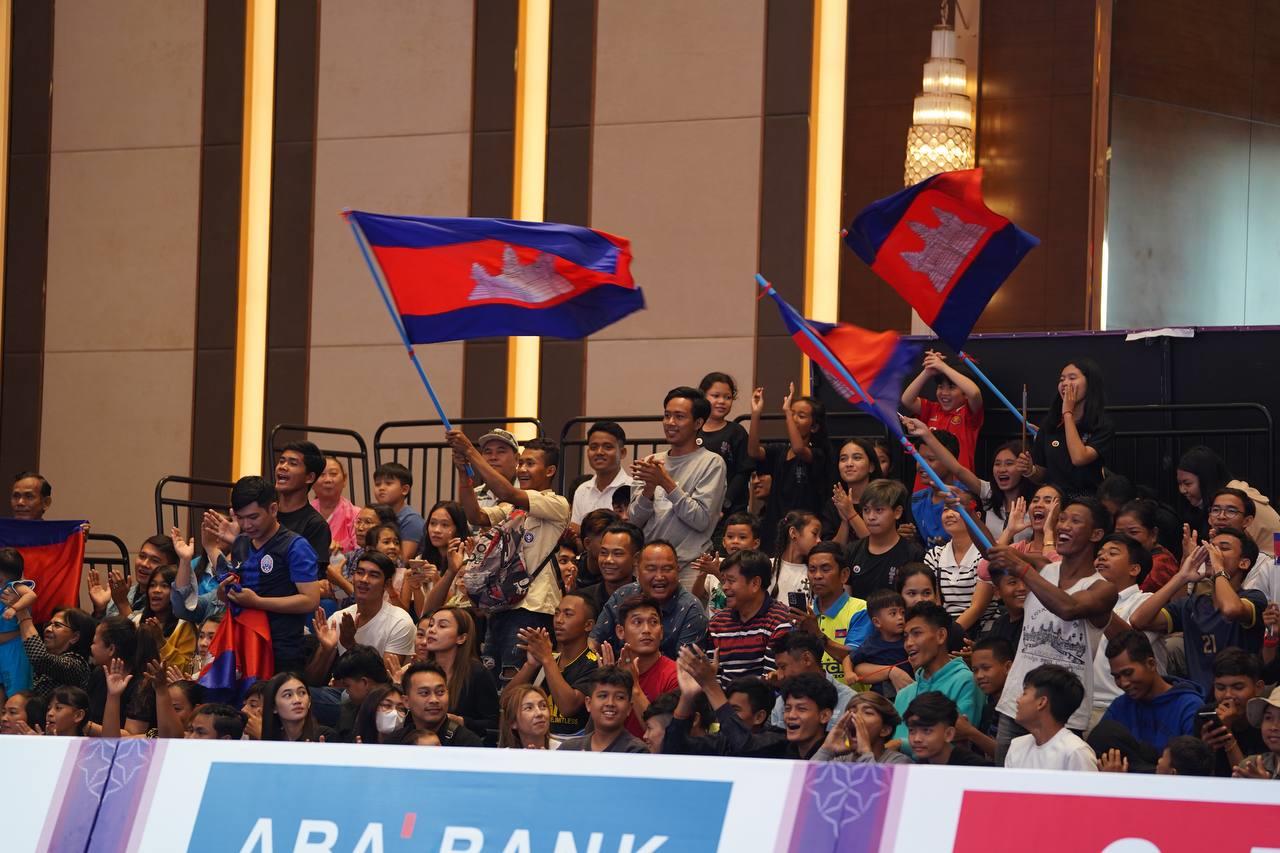 (ភ្នំពេញ)៖ អបអរសាទរ កីឡាករវ៉ូវីណាមកម្ពុជា ឈ្នះមេដាយមាស ផ្នែកសម្តែងជាក្រុមបុរស ៤នាក់ វិញ្ញសាមេគុនអាវុធ (ដាវ) យកបាន ២៧២ពិន្ទុ ដែលបានយកឈ្នះក្រុមថៃ (ប្រាក់) និងវៀតណាម (សំរឹទ្ធ) នៃព្រឹត្តិការណ៍កីឡាស៊ីហ្គេម លើកទី៣២ នៅកម្ពុជា នៅរសៀលថ្ងៃទី០៦ ខែឧសភា ឆ្នាំ២០២៣ នេះ។