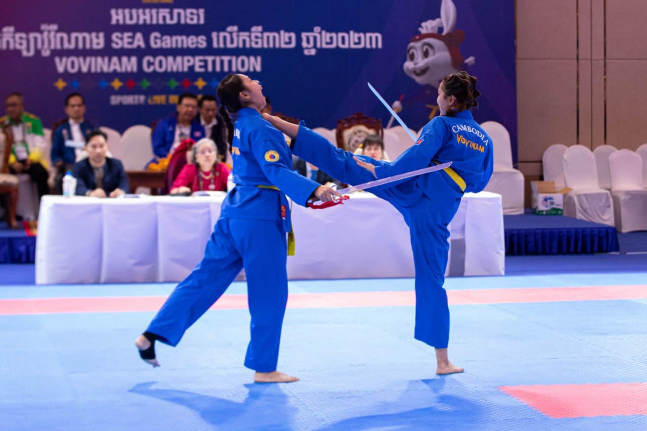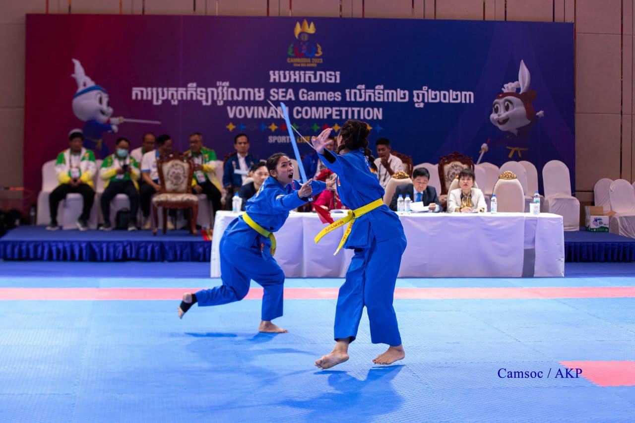 ស៊ីហ្គេម២០២៣៖ កីឡាការិនី ពៅ សុខា និង សឿ ច័ន្ទលក្ខិណា ឈ្នះមេដាយមាស វិញ្ញាសាសម្ដែងស្នៀតការពារខ្លួនប្រើដាវជាគូ