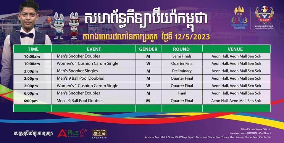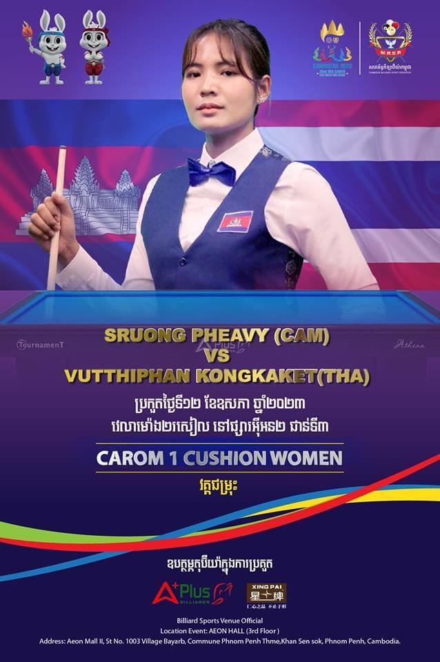 រសៀលនេះ កីឡាការិនី ស្រួង ភាវី ប្រកួតប៊ីយ៉ាការ៉ុម១បាំង ជាមួយថៃ វគ្គជម្រុះ