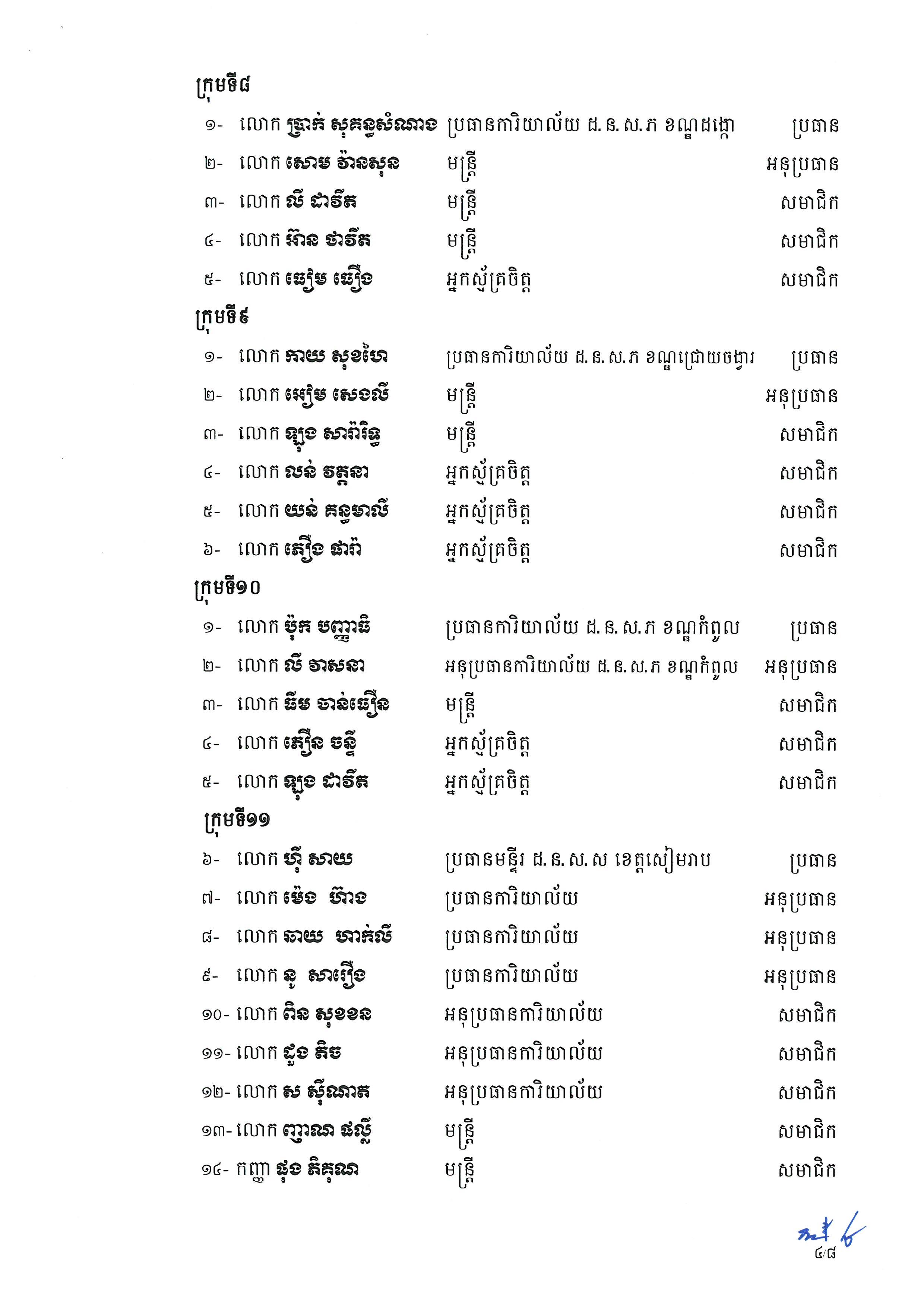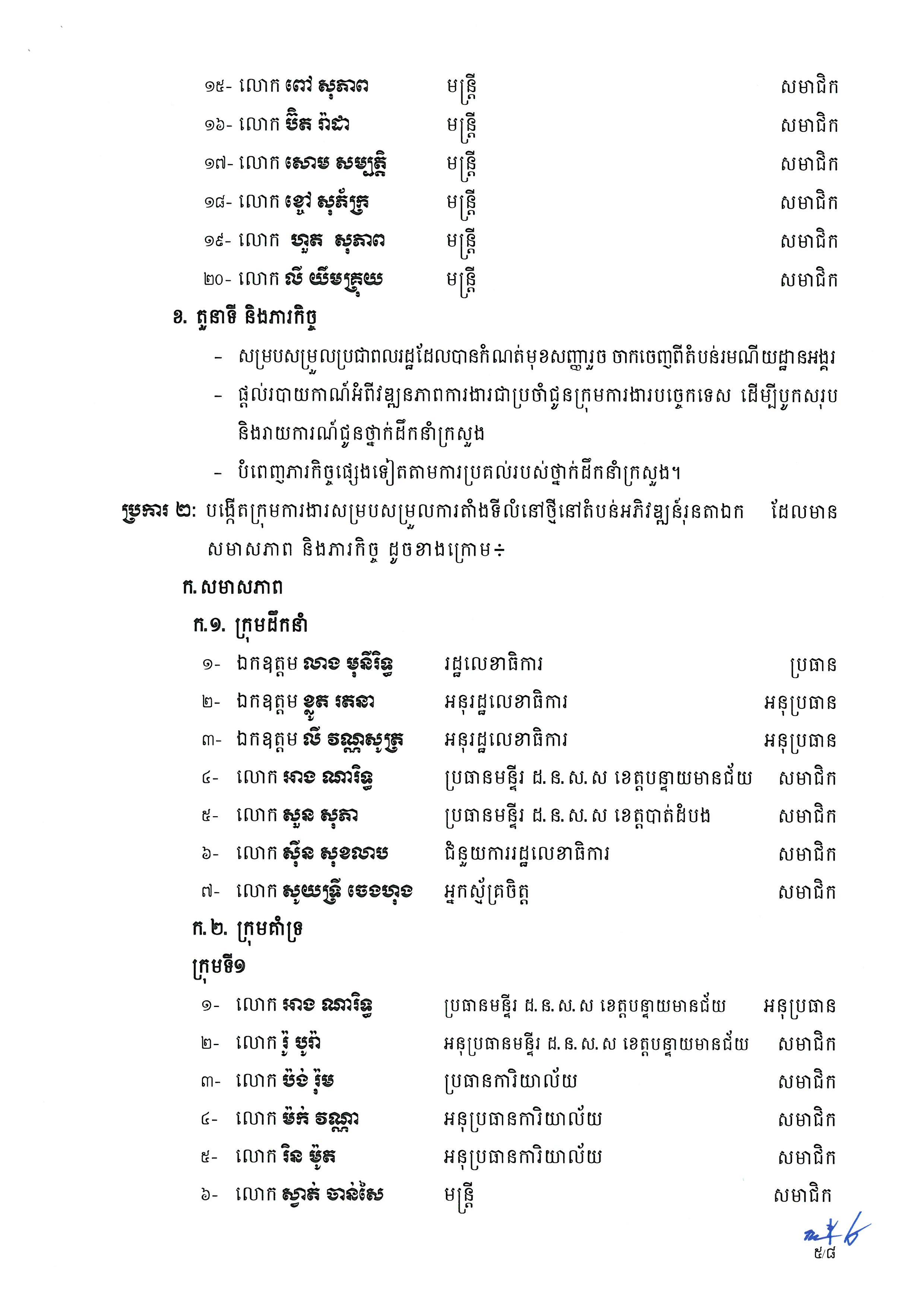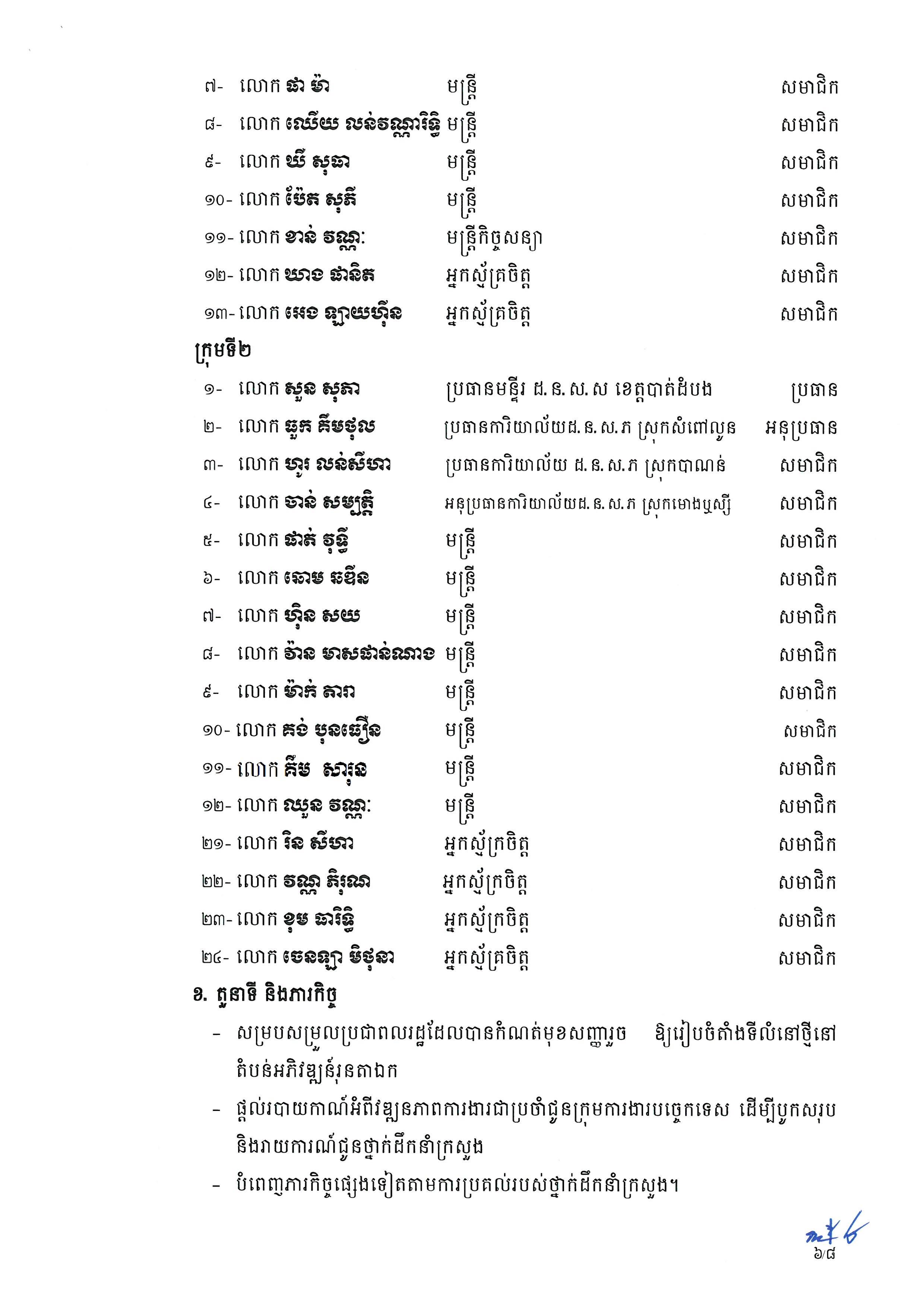 សម្រាប់តួនាទី និងភារកិច្ចរបស់ក្រុមការងារនេះរួមមាន៖