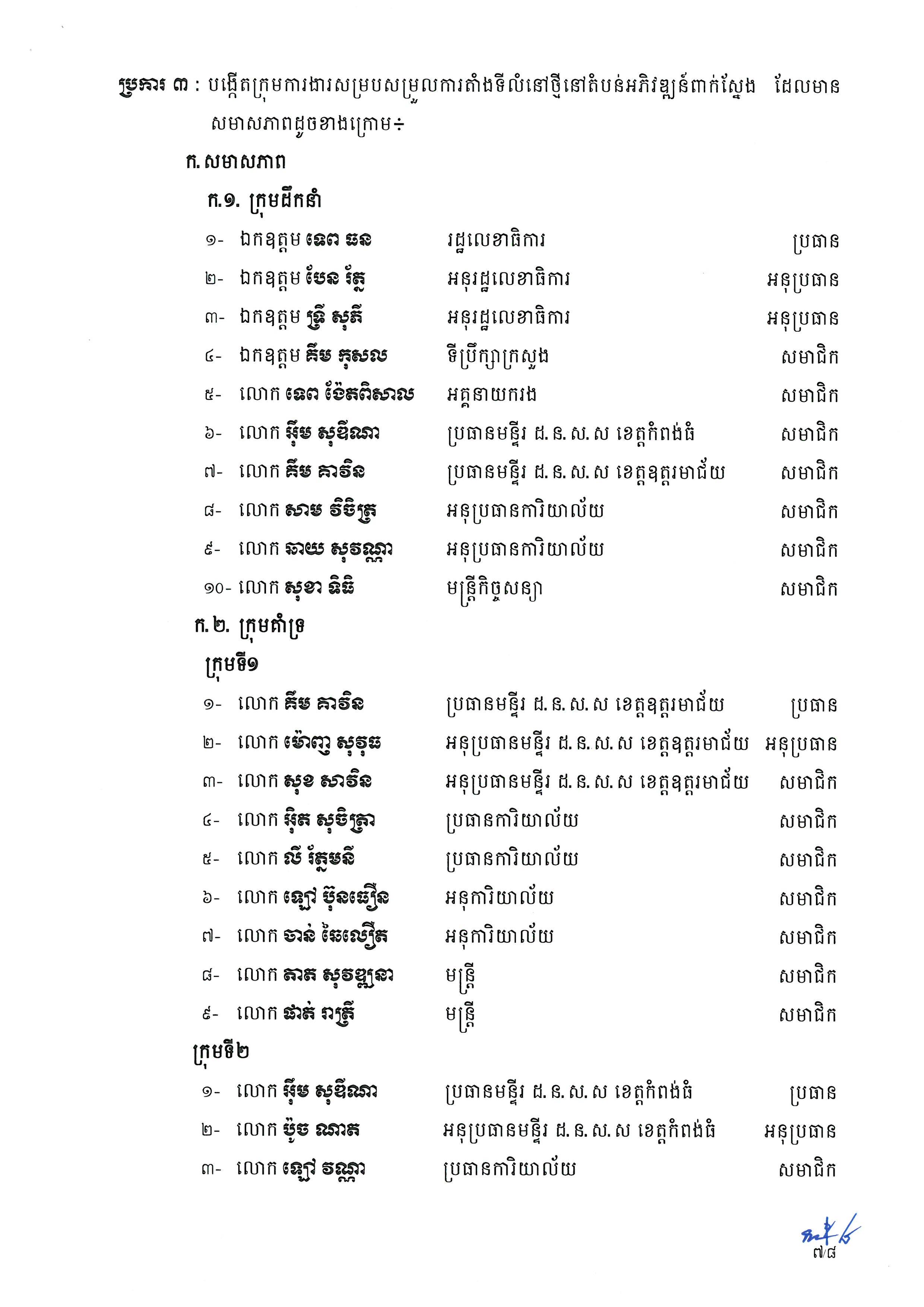 * សម្របសម្រួលប្រជាពលរដ្ឋដែលបានកំណត់មុខសញ្ញារួច ឲ្យរៀបចំតាំងទីលំនៅថ្មីនៅតំបន់អភិវឌ្ឍន៍ពាក់ស្នែង ។
