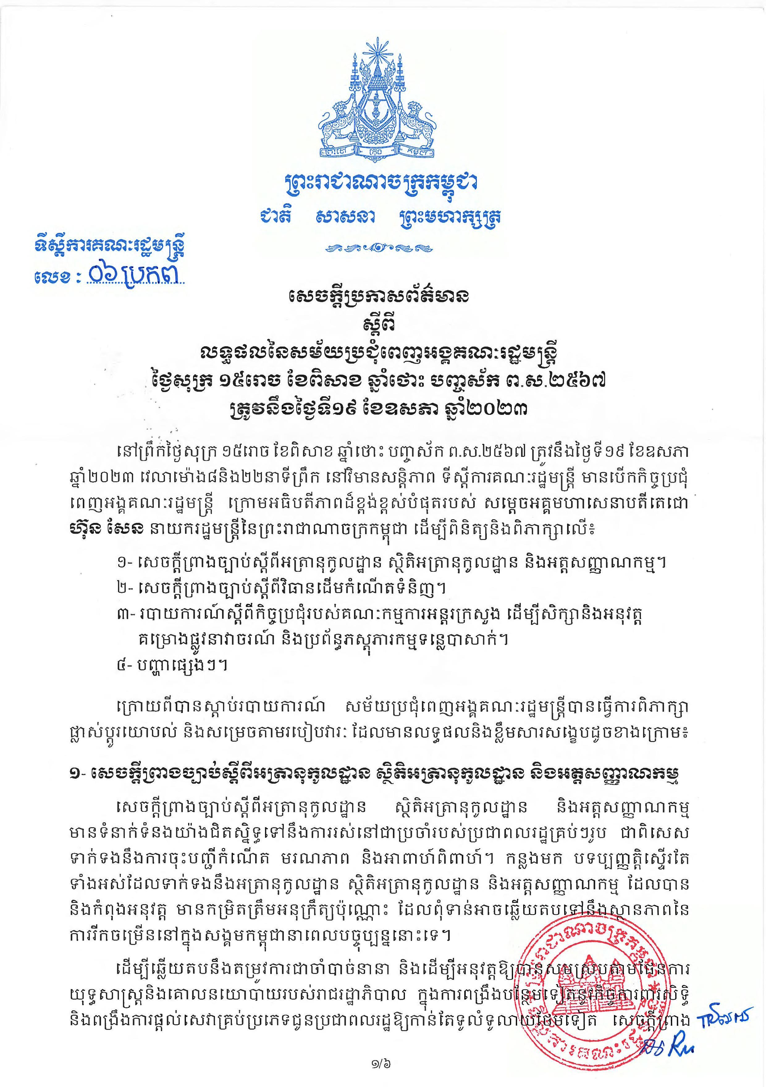 (ភ្នំពេញ)៖ គម្រោងជីកផ្លូវទឹកតភ្ជាប់ពីទន្លេ ទៅសមុទ្រ ត្រូវបានរាជរដ្ឋាភិបាលទទួលយកហើយ ក្នុងកិច្ចប្រជុំគណៈរដ្ឋមន្ត្រីដឹកនាំដោយសម្តេចតេជោ ហ៊ុន សែន នាយករដ្ឋមន្ត្រីកម្ពុជានាព្រឹកថ្ងៃសុក្រ ទី១៩ ខែឧសភា ឆ្នាំ២០២៣នេះ។ ផ្លូវទឹកនេះ ត្រូវបានប្រសិទ្ធនាមថា «ព្រែកជីកហ្វូណនតេជោ»។