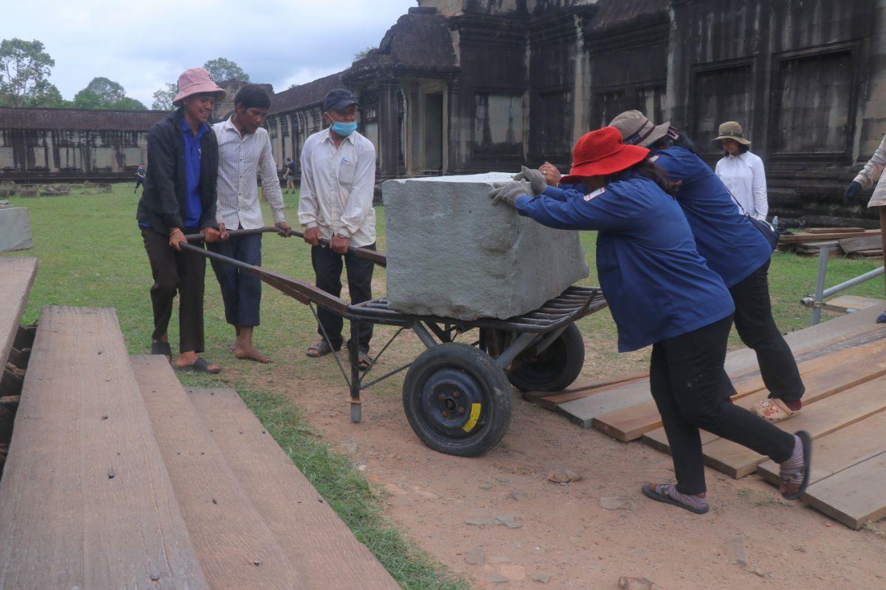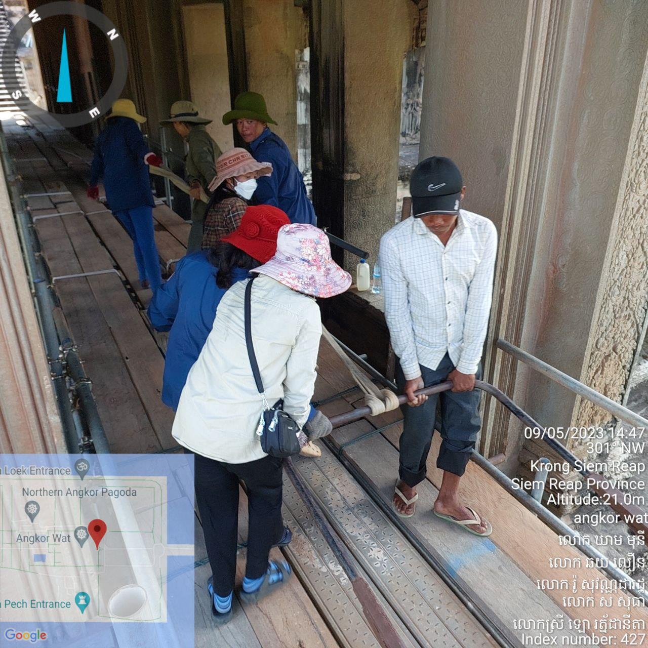 គួរជម្រាបថា ក្រុមការងាររបស់នាយកដ្ឋានអភិរក្សប្រាសាទនិងបុរាណវិទ្យានៃអាជ្ញាធរជាតិអប្សរាខាងលើនេះ កំពុងមមាញឹកអូសថ្មភក់ឡើងទៅលើរួតបាកាណនៃប្រាសាទអង្គរវត្ត ដើម្បីជួសជុលនិងពង្រឹងឡើងវិញនៅតាមកន្លែងថ្មដែលញែកចេញពីគ្នា និងបាត់បង់ថ្មឱ្យប្រសើរឡើងវិញ ចាប់តាំងពីដើមខែឧសភា ឆ្នាំ២០២៣មក។