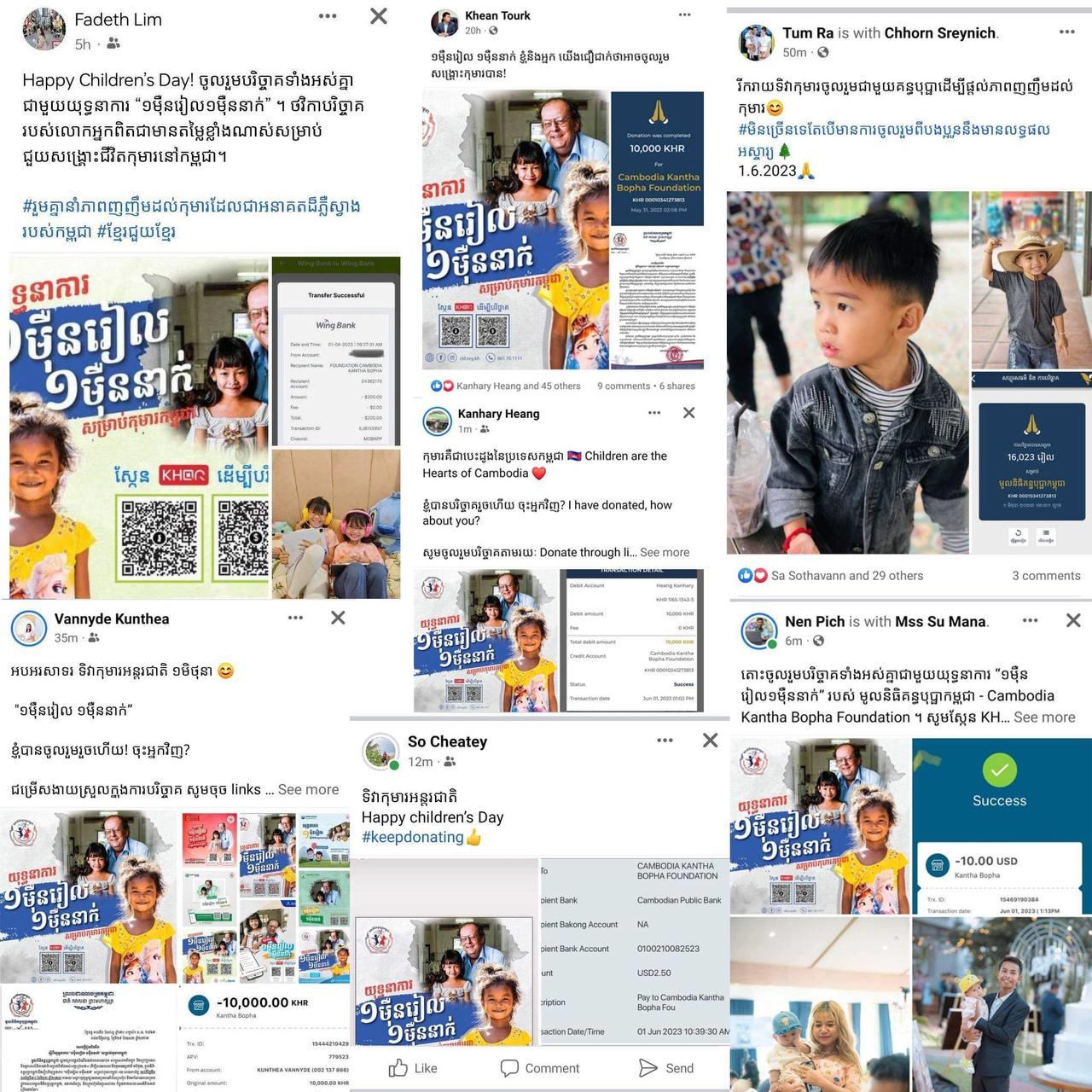 (ភ្នំពេញ)៖ ត្រឹមតែរយៈពេល៦ថ្ងៃដំបូង នៃយុទ្ធនាការ «១ម៉ឺនរៀល ១ម៉ឺននាក់» សម្រាប់កុមារកម្ពុជា ដែលមានរយៈពេល៣០ថ្ងៃ (ពេញមួយខែមិថុនា), មូលនិធិគន្ធប្ផាកម្ពុជា បានទទួលថវិកាបរិច្ចាគ រហូតដល់ជាង៨៣ម៉ឺនដុល្លារអាមេរិក ពីសប្បុរសជនជាង១៨ម៉ឺននាក់ ដែលនេះសបញ្ជាក់ពីទឹកចិត្ត និងស្មារតី «ខ្មែរជួយខ្មែរ» កំពុងតែផុលផុស និងរស់រវើកក្នុងចំណោមពុកម៉ែបងប្អូនខ្មែរយើងនៅគ្រប់ទិសទី។