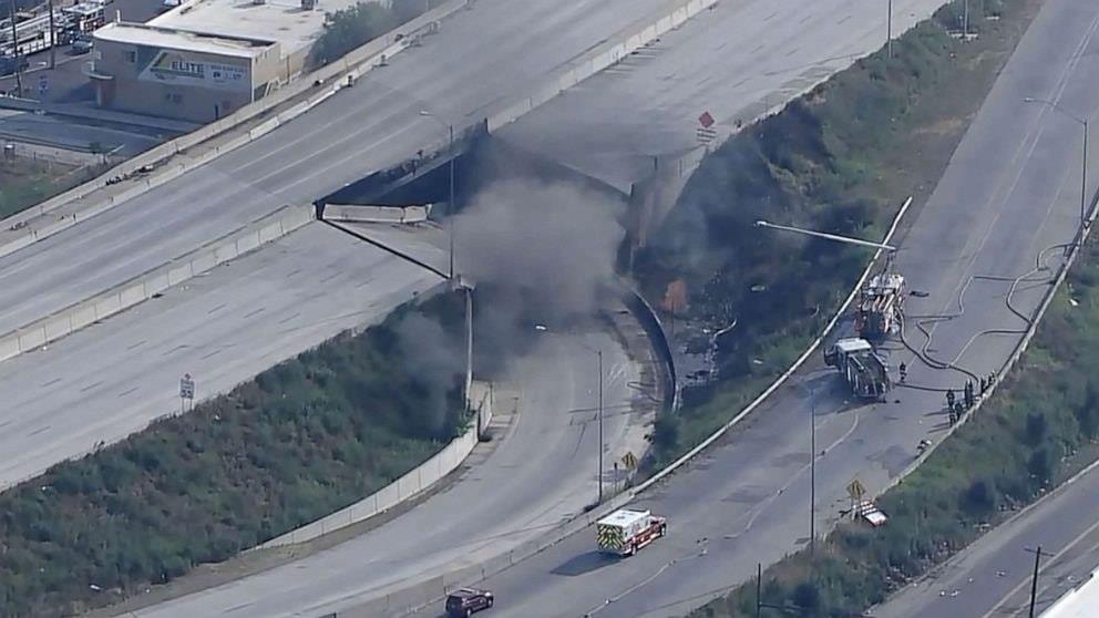ស្ពានអាកាសលើផ្លូវ highway ដ៏សំខាន់មួយក្នុងសហរដ្ឋអាមេរិក បាក់រលំ ក្រោយរថយន្ដដឹកប្រេងផ្ទុះឆេះ