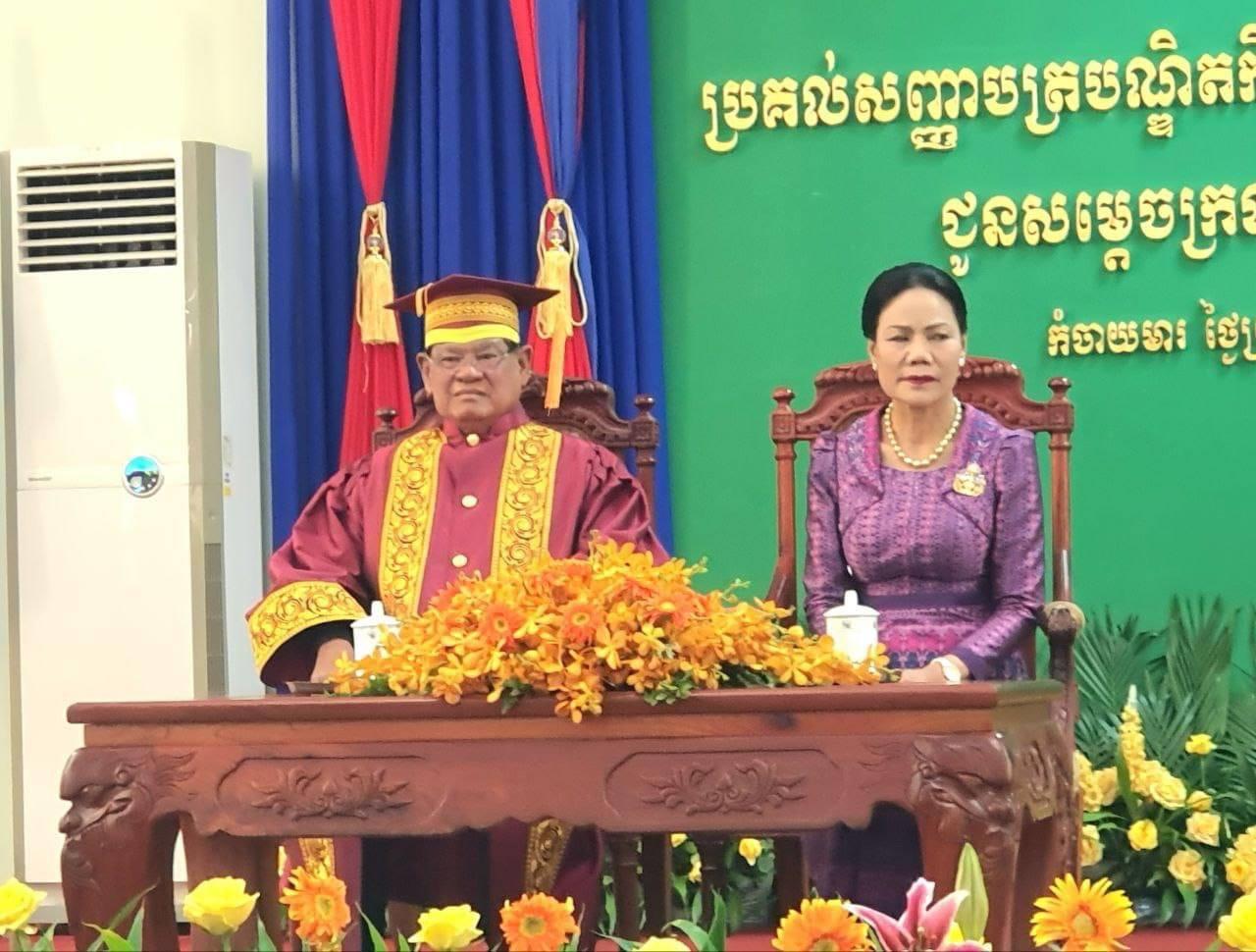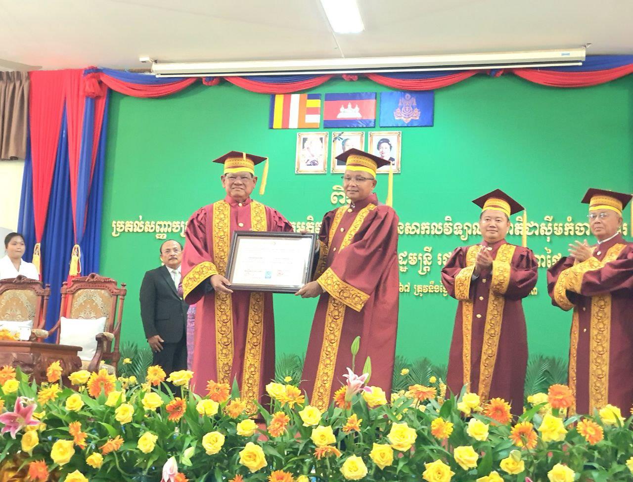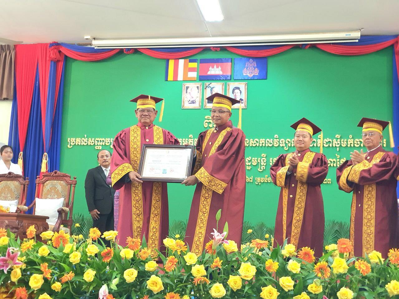 សម្ដេចក្រឡាហោម ស ខេង ទទួលបានសញ្ញាបត្របណ្ឌិតកិត្តិយស ផ្នែកអភិវឌ្ឍន៍ជនបទ ពីសាកលវិទ្យាល័យជាតិជាស៊ីមកំចាយមារ