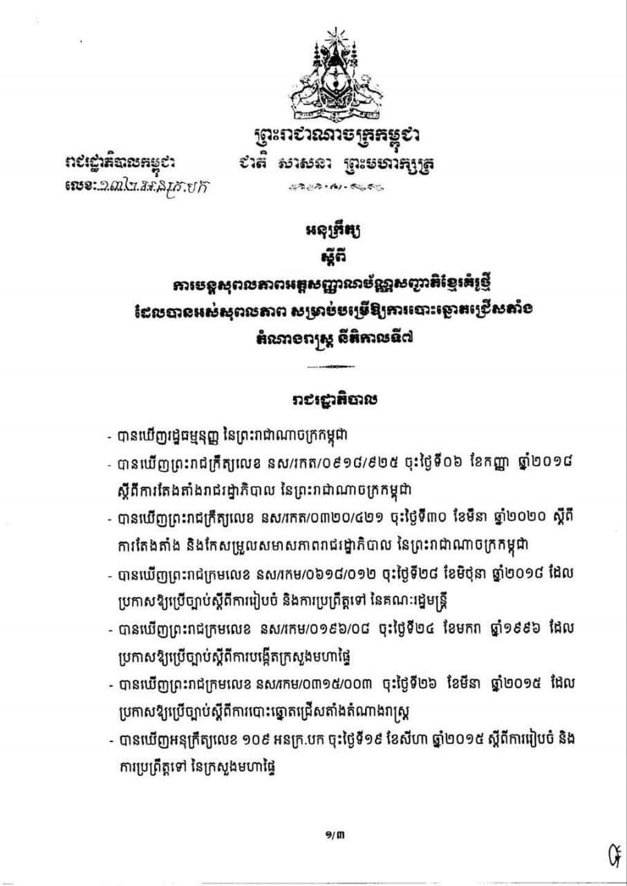 សម្តេចតេជោ ហ៊ុន សែន ចេញអនុក្រឹត្យ បន្តសុពលភាពអត្តសញ្ញាណប័ណ្ណសញ្ជាតិខ្មែរគំរូថ្មី​ ដែលបានផុតសុពលភាព​ អាចប្រើប្រាស់សម្រាប់បោះឆ្នោតជ្រើស តាំងតំណាងរាស្ត្រ នីតិកាលទី៧