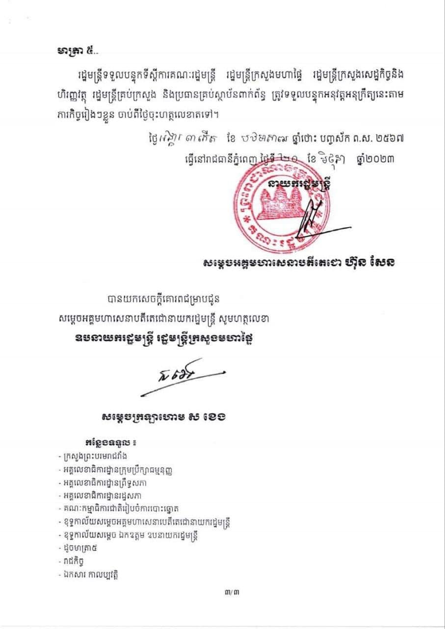 ខាងក្រោមនេះ ជាអនុក្រឹត្យរបស់សម្តេចតេជោ ហ៊ុន សែន៖
